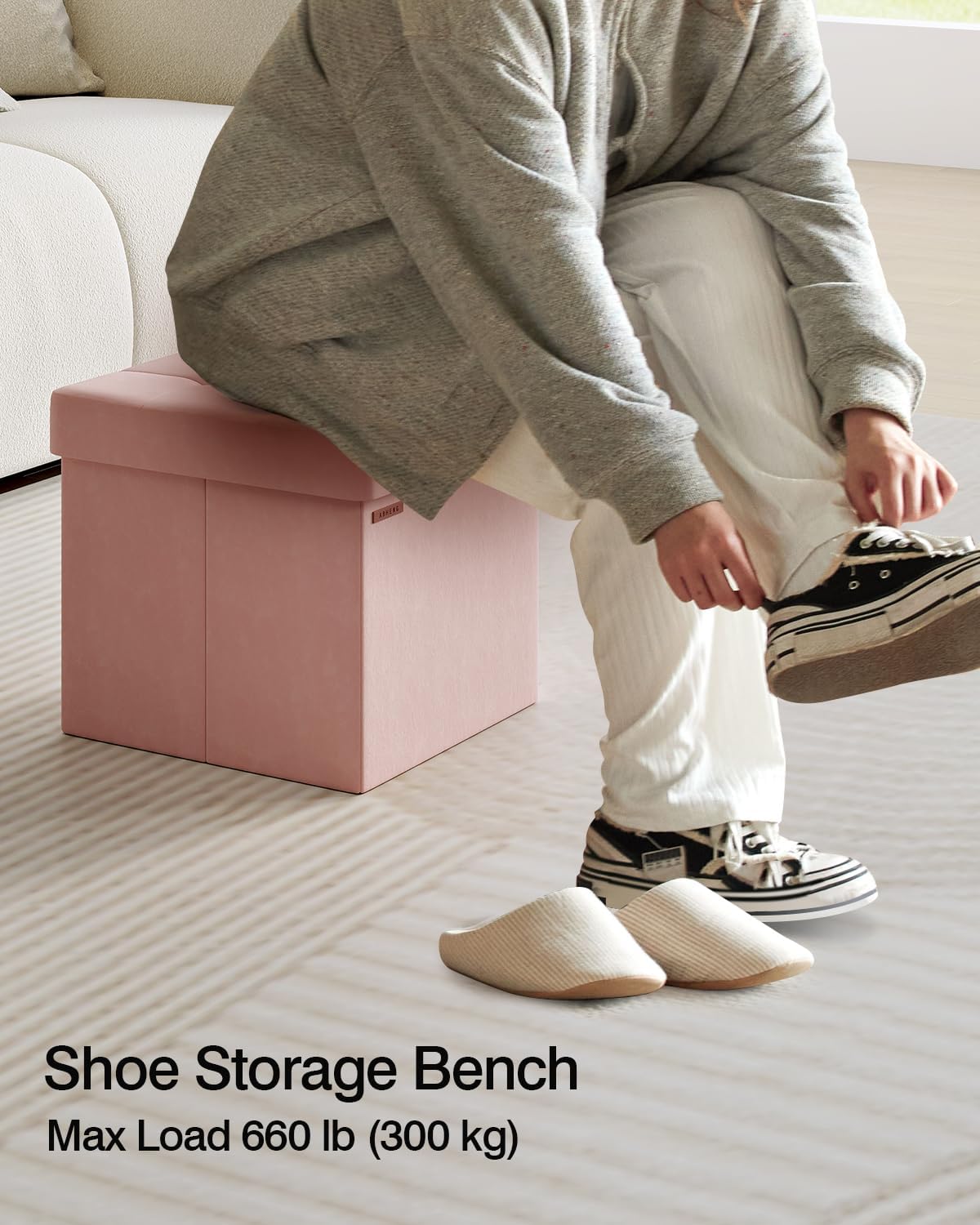 Folding Storage Ottoman, Velvet Storage Bench, Footrest, Footstool, for Living Room, Bedroom and Office,15 x 15 x 15 Inches, 300 kg Load Capacity,Jelly Pink,UASND04P
