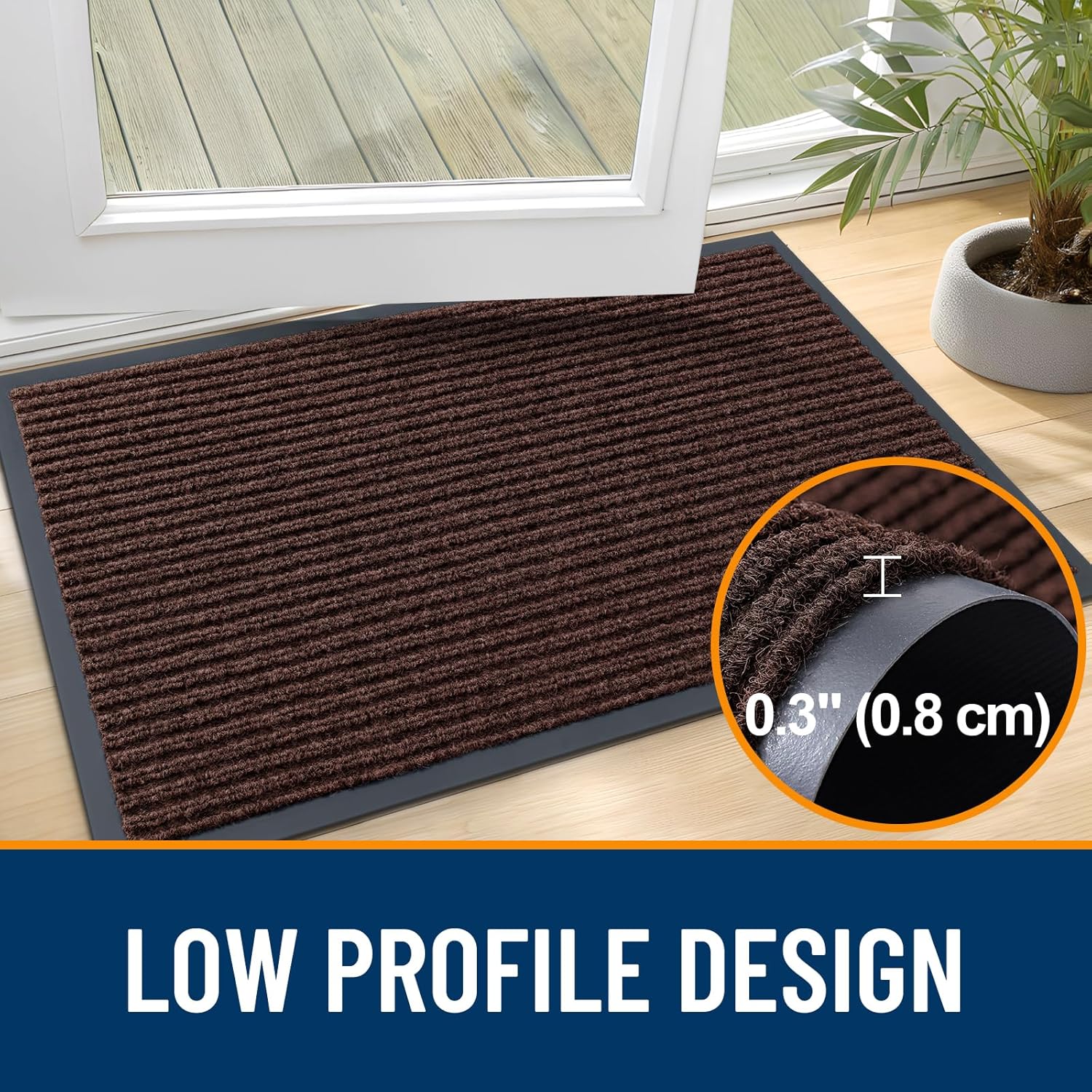 OLANLY Front Door Mat Indoor Outdoor Entrance, Waterproof Heavy Duty Doormat, Fade Resistant, Low Profile, Easy Clean Patio Porch Welcome Floor Mats for Entry, 47x32, Brown