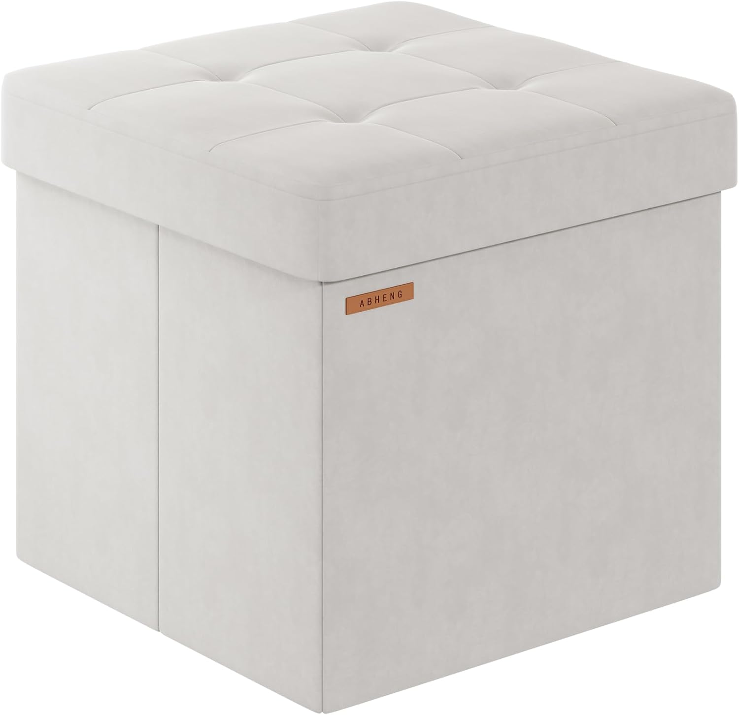 Folding Storage Ottoman, Velvet Storage Bench, Footrest, Footstool,for Living Room, Bedroom and Office,15 x 15 x 15 Inches, 300 kg Load Capacity,Cream White, UASND04W