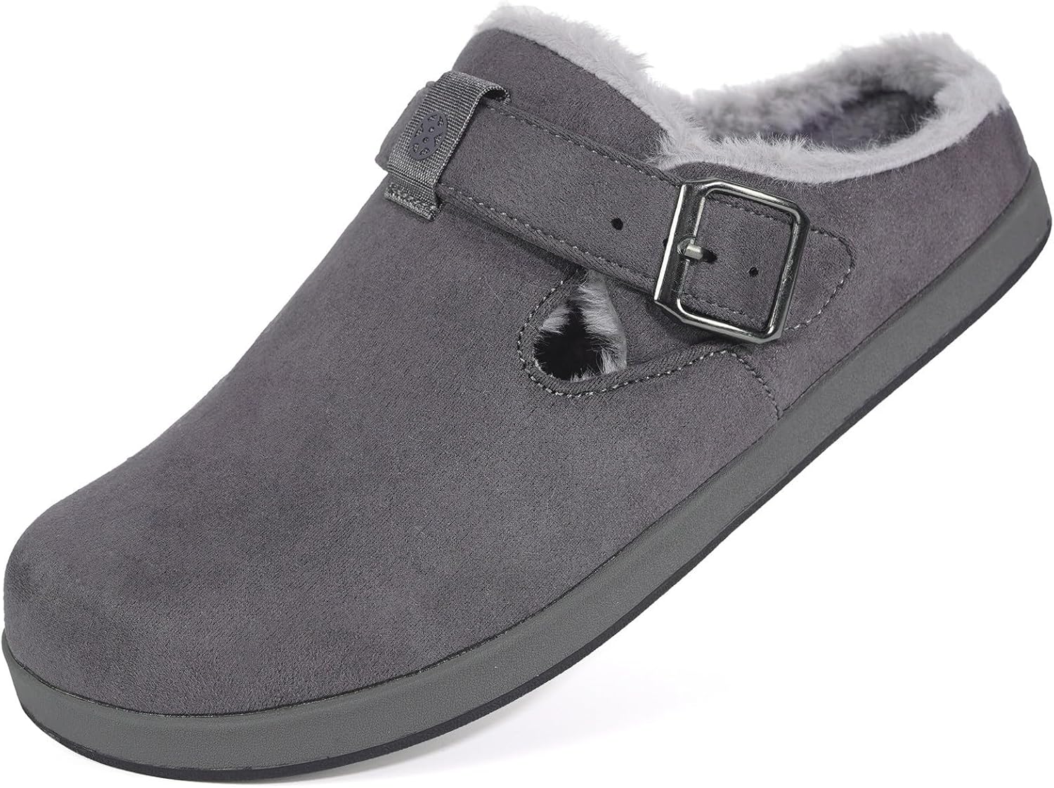 Fur Lined Clogs for Women Men Suede Winter Slippers Arch Support Slip on Mules Potato Shoes with Removable Cushion Footbed Warm Home House Shoes