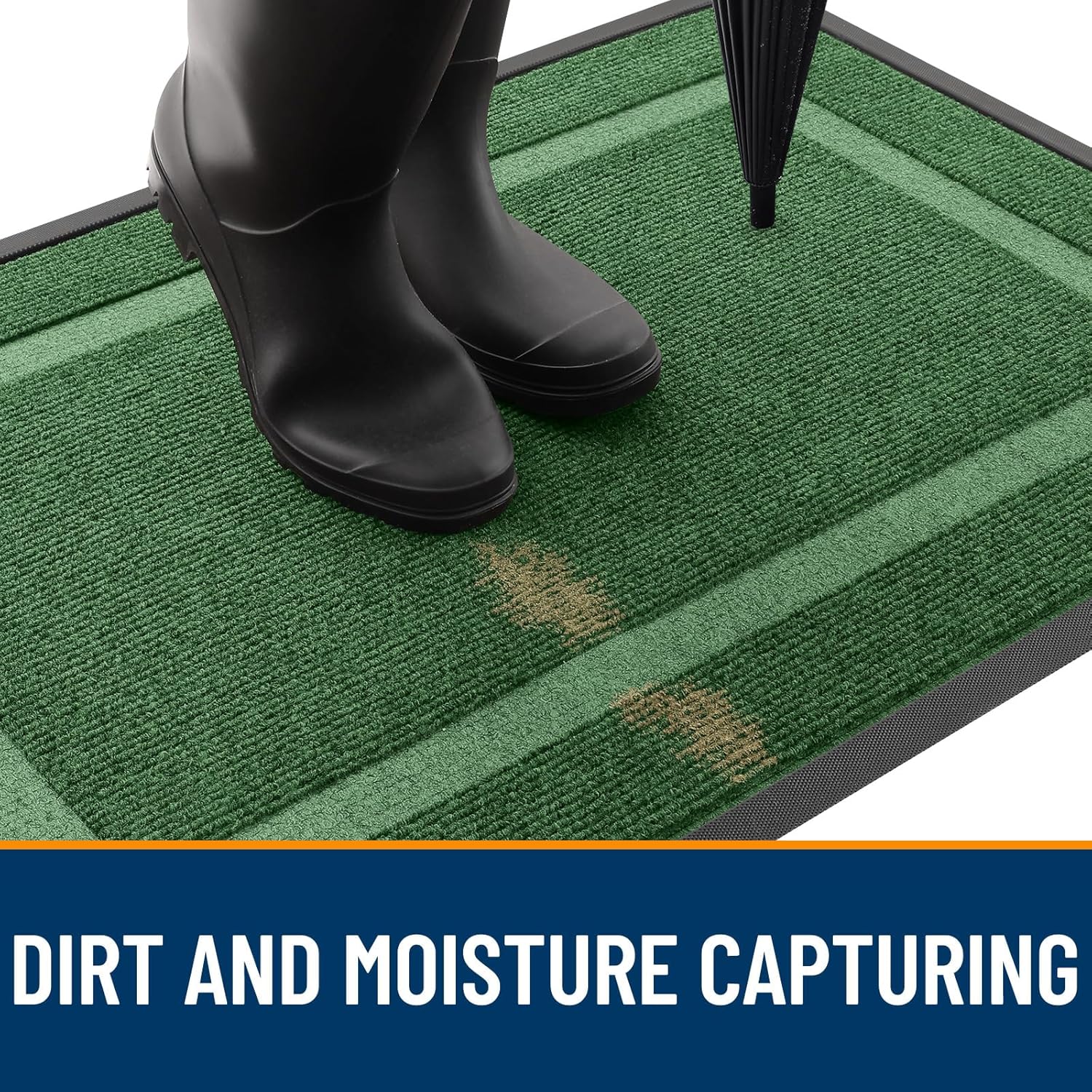 OLANLY Front Door Mat Indoor Outdoor Entrance, Waterproof All-Season, All-Weather Doormat, Sturdy Natural Rubber, Fade Resistant, Low Profile, Easy Clean Patio Porch Entryway Mat, 47x17, Green