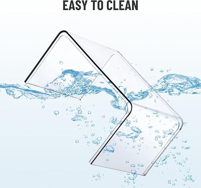 - No Need To Install, Receive And Use: Compared to other goods that need to be manually assembled, our upgraded clear cabinet organizer shelf can be used immediately when receiving them. Due to making of the premium PET material, just use mild soap and water to clean it, one wipe to clean, not dishwasher.