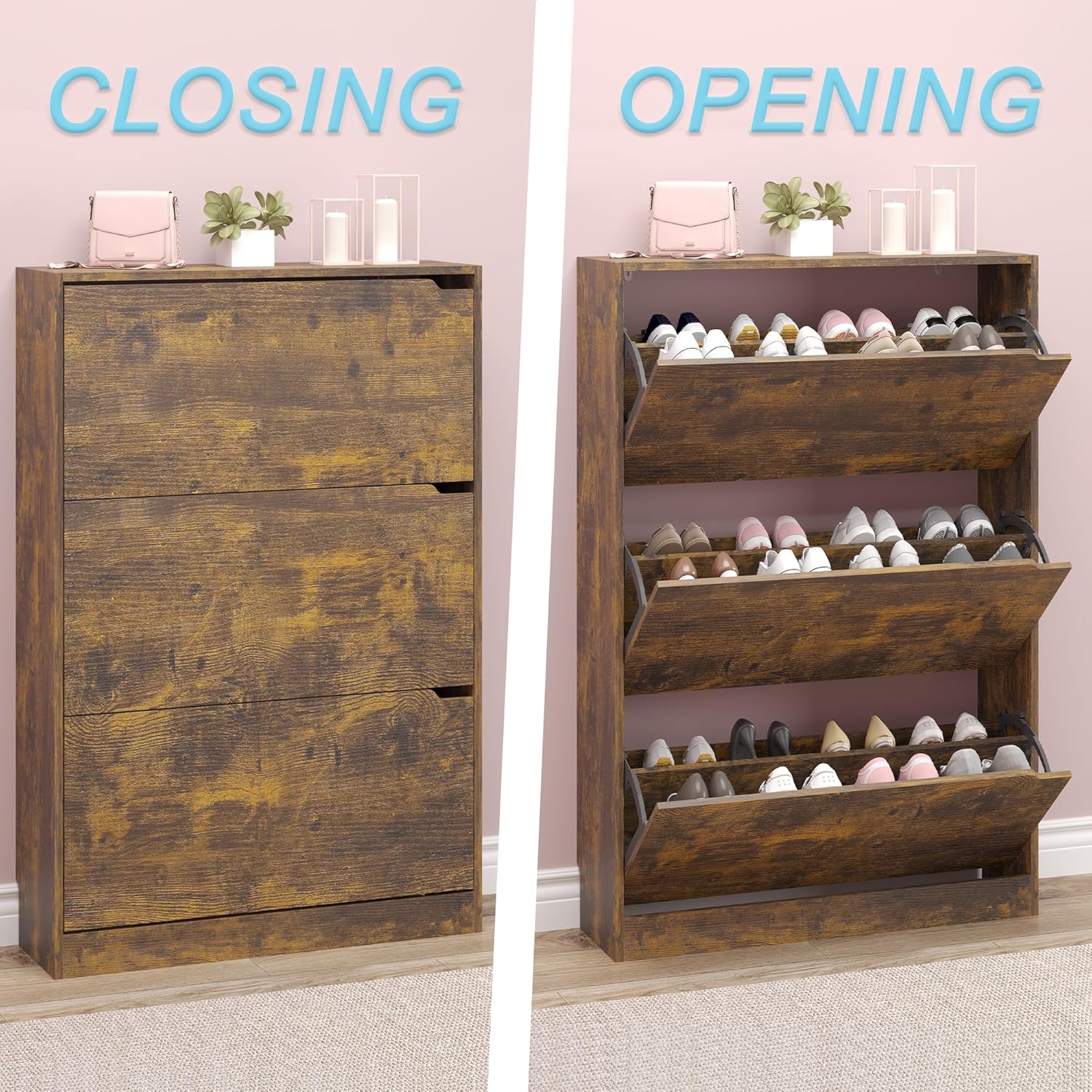 Shoe Cabinet with 3 Flip Drawers, Hidden Wood Shoe Cabinet,Freestanding Shoe Storage Cabinet for Entryway Hallway