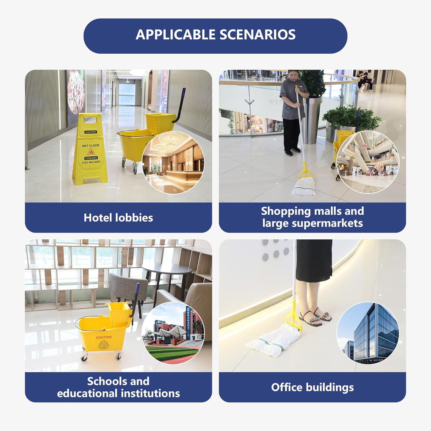 - 35 Quarts Commercial Mop Bucket with Side-Press Wringer for Floor Cleaning, Restaurants, Offices, and Janitorial Use; Designed for large-scale cleaning tasks, suitable for hotels, shopping malls, offices, schools, hospitals, and other commercial spaces.