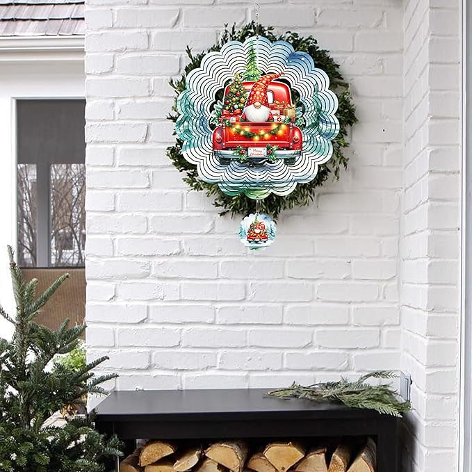 Wind Sculptures 3D Stainless Steel Christmas Decoration Garden Decoration Indoor Outdoor Hanging Ornament Worth Gift 12inch Santa Claus Metal Wind Sculptures