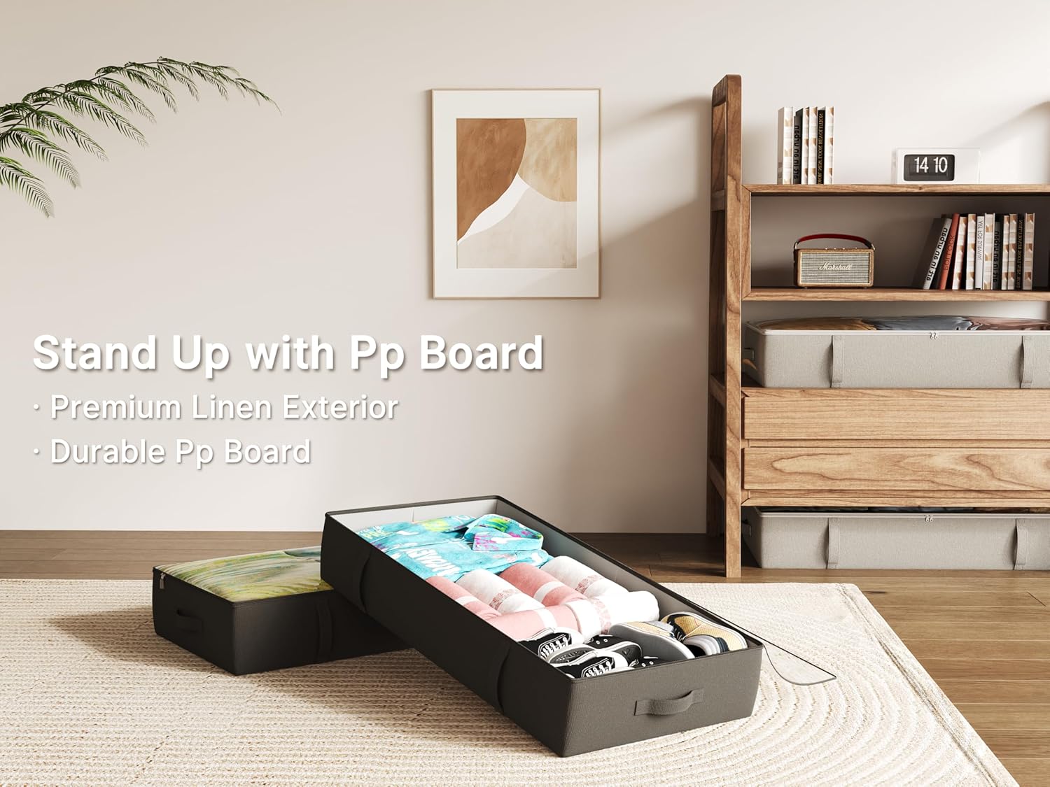- Versatile Under Bed Storage Bins - 2 Pack of Under bed storage containers are designed for blankets and pillows, out-of-season clothes and shoes, books and toys, these storage containers have a sturdy construction and can handle all types of storage needs