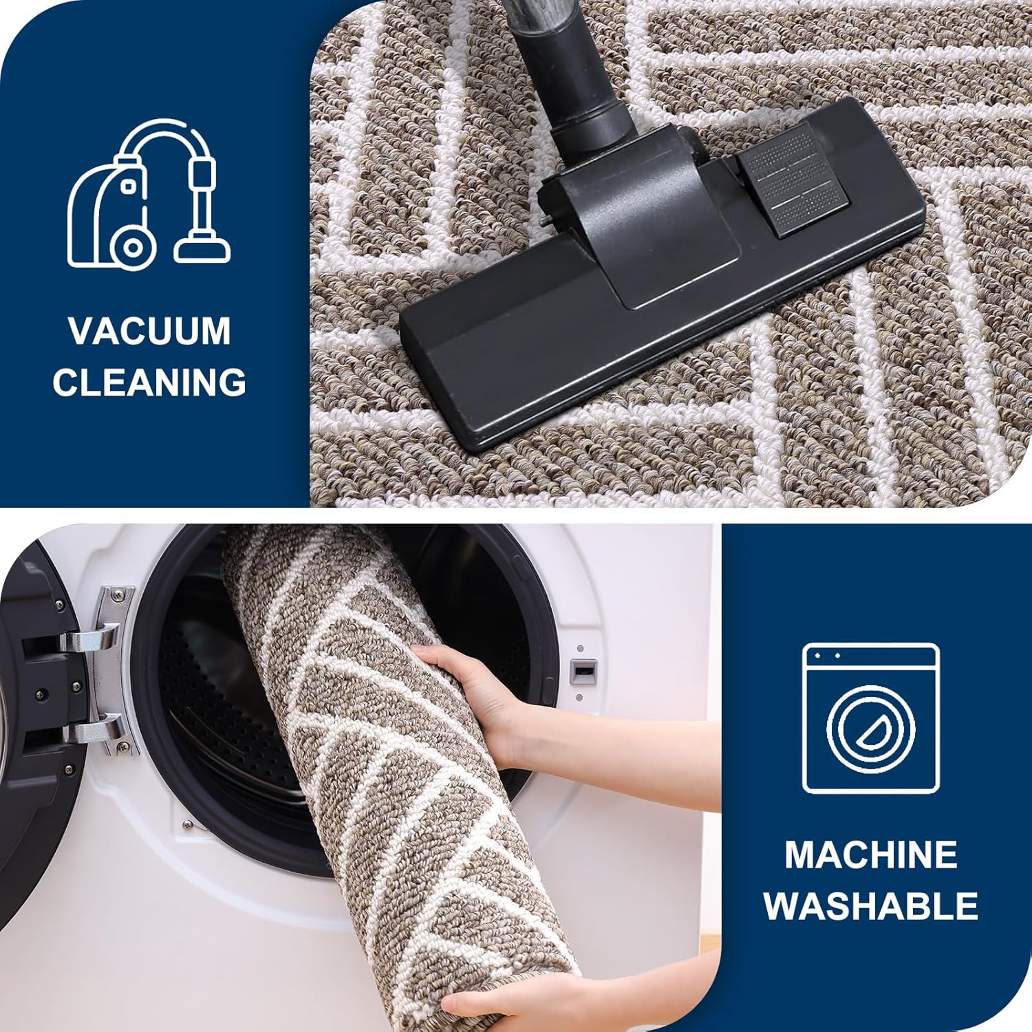 - [EASY CLEANING AND MAINTENANCE]: Cleaning the indoor entrance mat is simple and hassle-free. Easily shake off dirt, or use a broom or vacuum for regular cleaning. For a deeper clean, simply rinse it with a hose or machine wash with cold water.