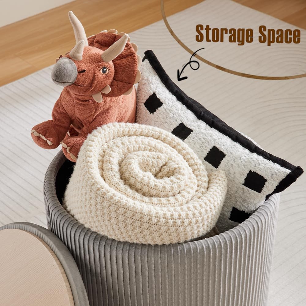 - [ Larger Size, Larger Capacity] The velvet round ottoman with storage have 2 sizes: 17"D x 17"W x 18"H (Larger) 15"D x 15"W x 15"H(Small),the large size mean more confortable for sitting and much more storage space.This footrest stool is so stable that it can hold up to 300 pounds.