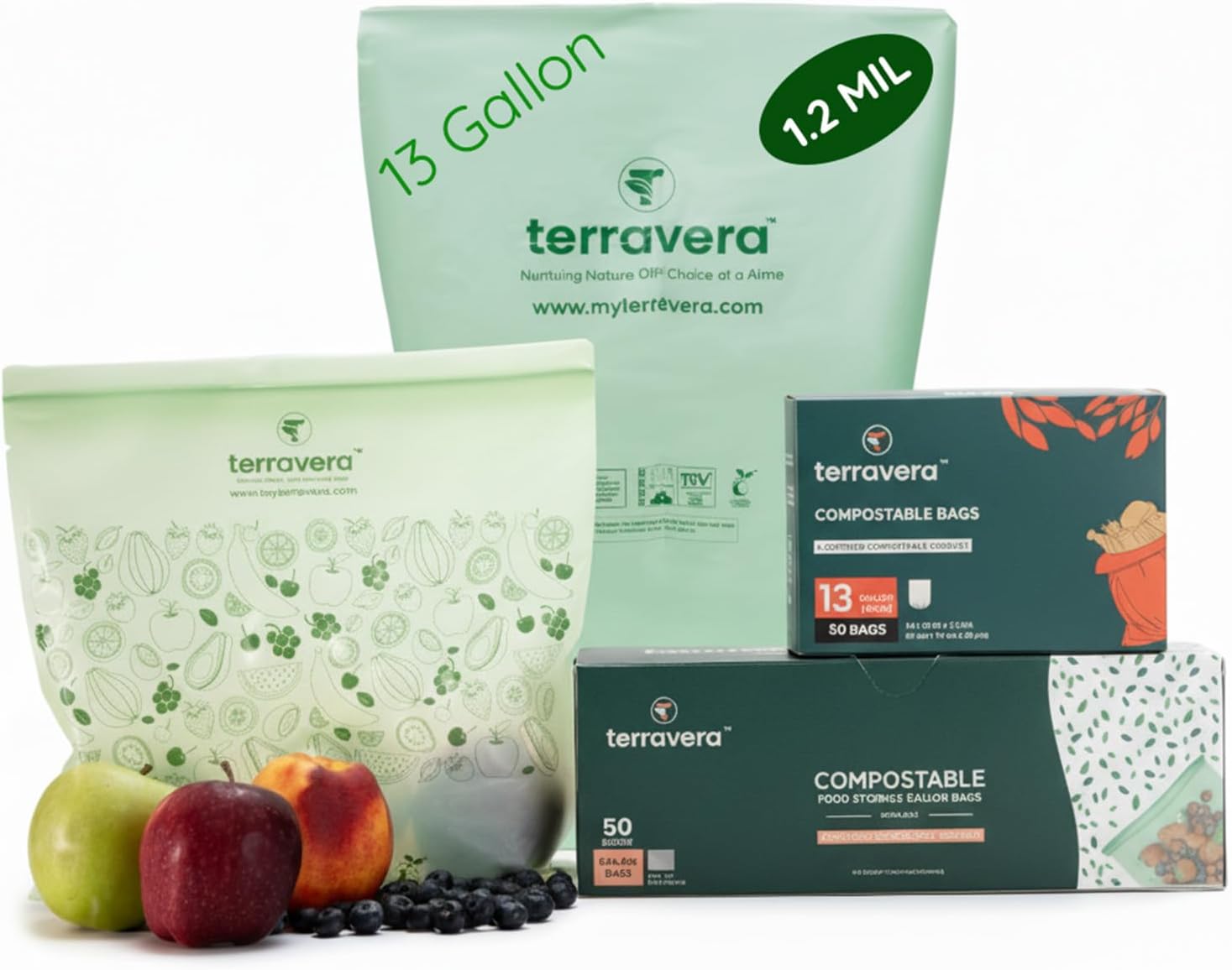 - ECO-FRIENDLY CHOICE: terravera bags are BPI and OK Home certified & 100% compostable bags, decompose completely within 180 days