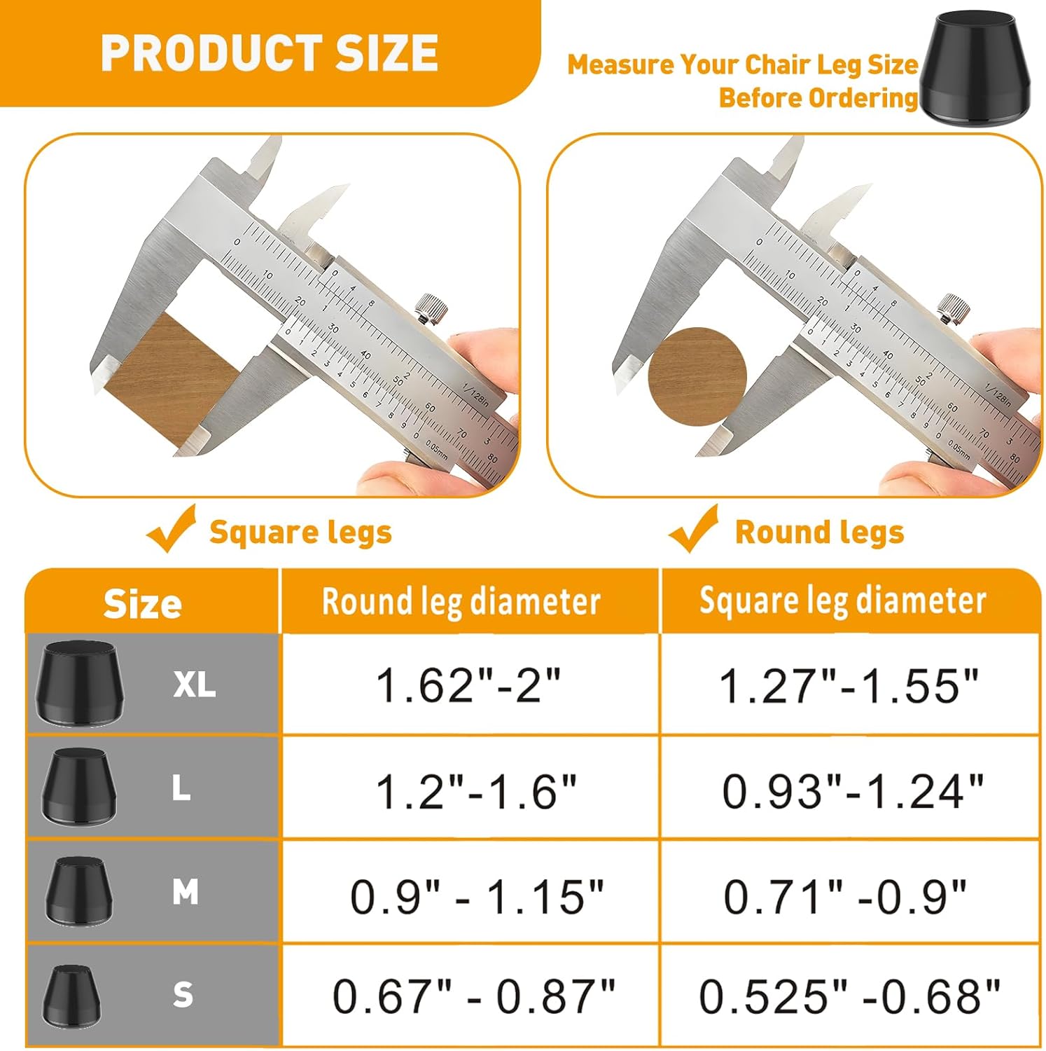 - 【UNIVERSAL SHAPE AND SIZE】:Furniture Sliders has High elasticity, free to pull.No deformation and no discolorratio.Chair Leg Sliders are good for round furniture legs 1.2- 1.6"(30-40mm) and square legs 0.93-1.24"(23.55-31.4mm).with perimeter of 3.71-4.95" (94.2- 125.6mm).