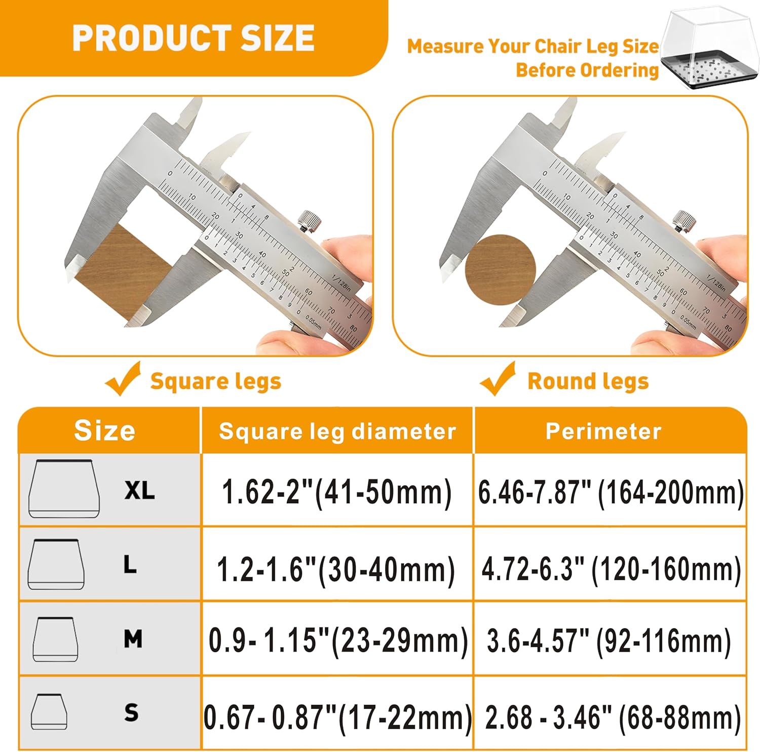 - 【UNIVERSAL SHAPE AND SIZE】:Furniture Sliders has High elasticity, free to pull.No deformation and no discolorratio.Chair Leg Sliders are good for square furniture legs 1.2-1.6"(30-40mm).with perimeter of 4.72-6.3" (120-160mm).