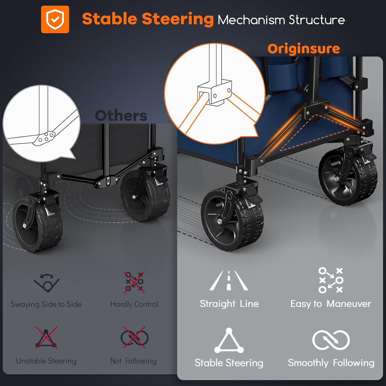 - ใ๐ฃ๐ฎ๐๐ฒ๐ป๐๐ฒ๐ฑ ๐ฆ๐๐ฎ๐ฏ๐น๐ฒ ๐ฆ๐๐ฒ๐ฒ๐ฟ๐ถ๐ป๐ด ๐ ๐ฒ๐ฐ๐ต๐ฎ๐ป๐ถ๐๐บ & ๐๐ฑ๐ท๐๐๐๐ฎ๐ฏ๐น๐ฒ ๐ฅ๐ฒ๐ฏ๐ผ๐๐ป๐ฑ๐ฎ๐ฏ๐น๐ฒ ๐๐ฎ๐ป๐ฑ๐น๐ฒ ๐๐ผ๐น๐ฑ๐ถ๐ป๐ด ๐ช๐ฎ๐ด๐ผ๐ป ๐๐ฎ๐ฟ๐ใThis foldable cart features an stable innovative steering mechanism structure, Restoring the swaying 3-point handle-frame connection, resolving the problems of swaying side to side, loss of control, and steering difficulties of similar carts, significantly enhanced stability and maneuverability. A rebound adjustable handle with the lock can be freely adjusted in length, suitable for all types of people.