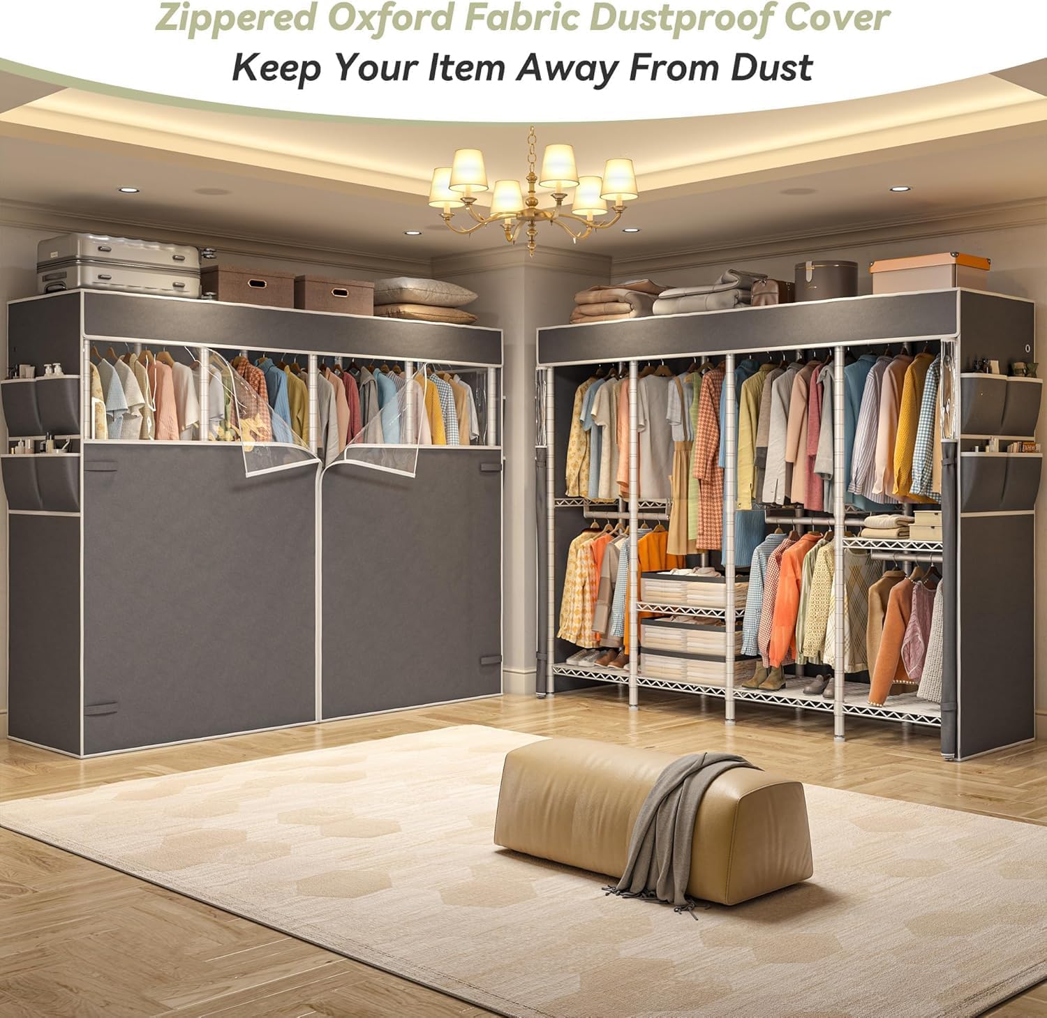 - 【Protective Fabric Cover】The cover is made of high-density fabric, the zipper design not only makes your store items easy but also keeps your item away from dust, and offers privacy while maintaining a neat appearance. Side pockets for storing more sundries.