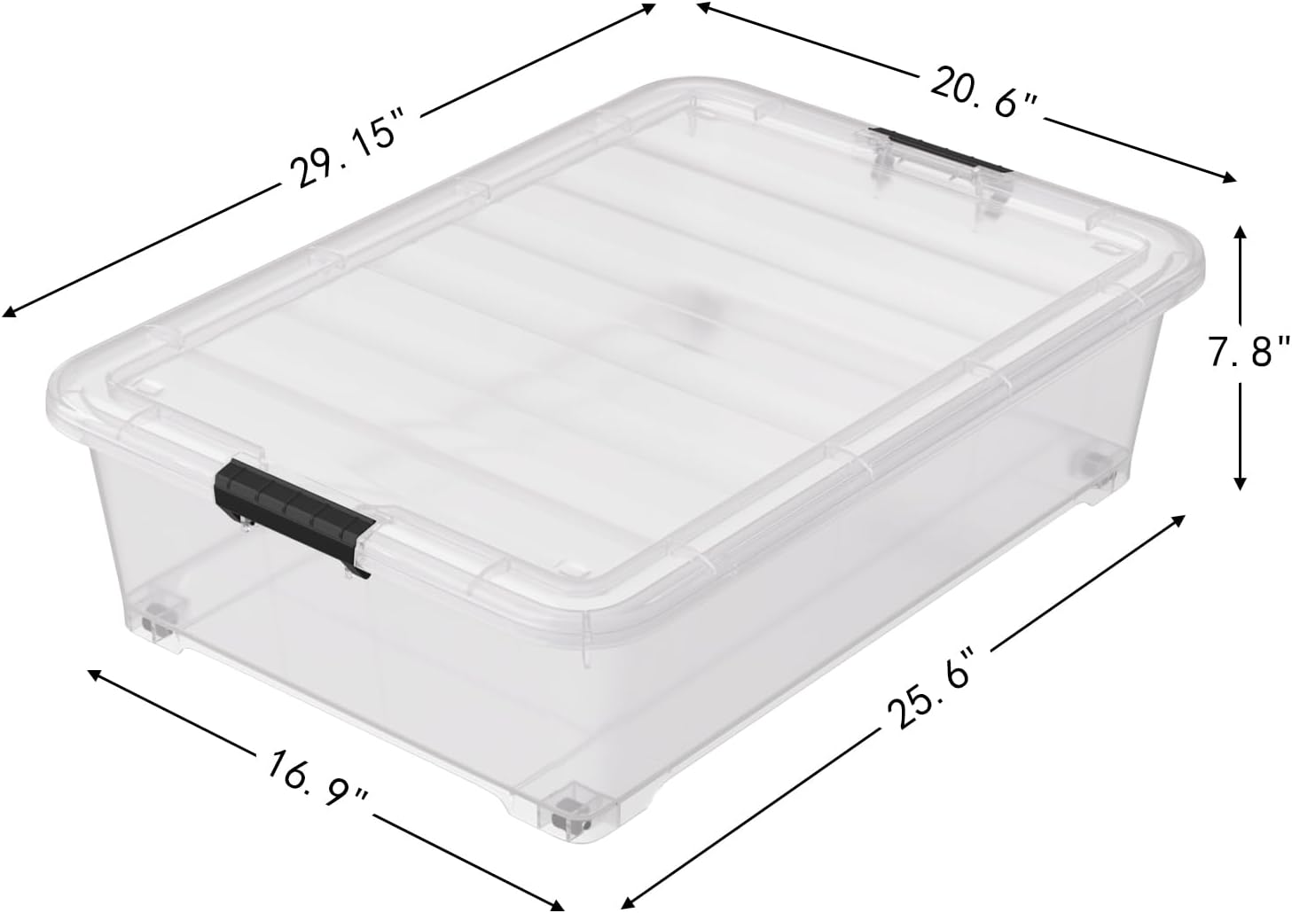 50 Quart Multipurpose Under Bed Storage Container Bins with Secure Latch Lid & Wheels, Underbed Storage Organizer Box, 3-Pack, Clear