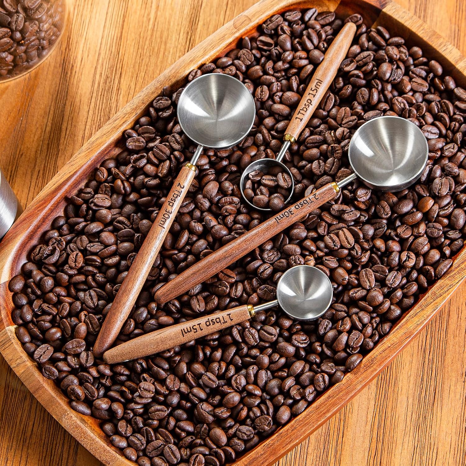 4PCS Wood Scoops for Jars Wooden Scoops for Canisters 2Tbsp + 1Tbsp Measuring Spoons for Coffee Bean Powder Coffee Scoop Measuring Scoop for Salt Sugar Multipurpose-Black Walnut+304 Stainless Steel