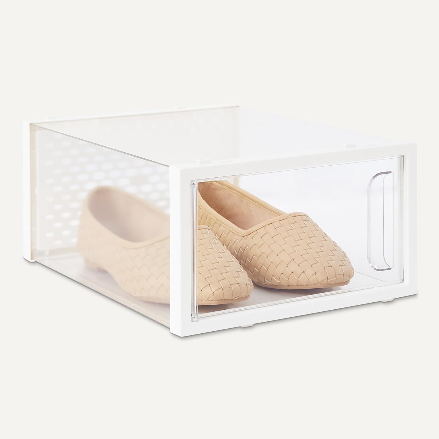 - 12-pack of stackable, interlocking shoe organizer boxes for versatile, space-saving storage — ideal for shoes, clothing, handbags, toys, accessories, and other household essentials