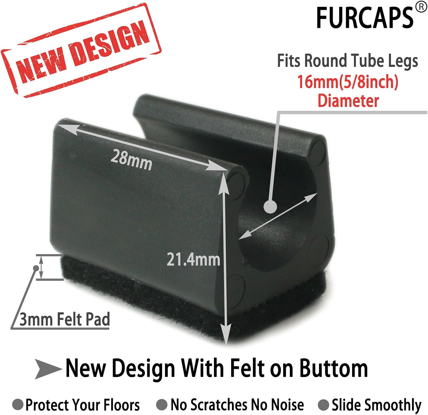 - Fit to Metal Tubular Legs: FURCAPS plastic chair foot u shaped floor glides fit round tube furniture legs.MEASURE leg size before purchase to save time! Recommended Size:Tubular Legs Diameter 16mm(5/8inch).Please watch video for how to measure chair leg and slect correct size