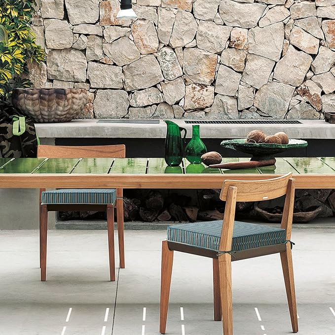 Sunbrella Square Corner Seat Cushions, 19" x 19" x 3", Set of 4, Indoor Outdoor Water Repellent Universal Chair Pads with Ties for Patio Furniture, Garden Dining Chairs, Swell Turquoise