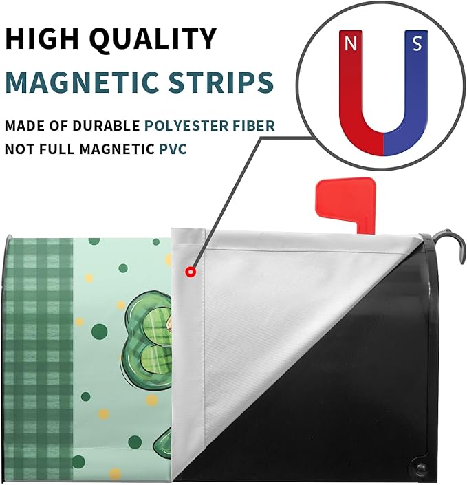 - ✉ FEATURES & ADVANTAGES ---Our Saint Patrick Day decorative mailbox cover can be used not only to decorate your mailbox but also as a good protective film for your mailbox. Easily protect your mailbox from stains and scratches. There is a soft magnetic strip at both ends, which can be firmly attached to the mailbox. It is very easy to install and no tools are needed.