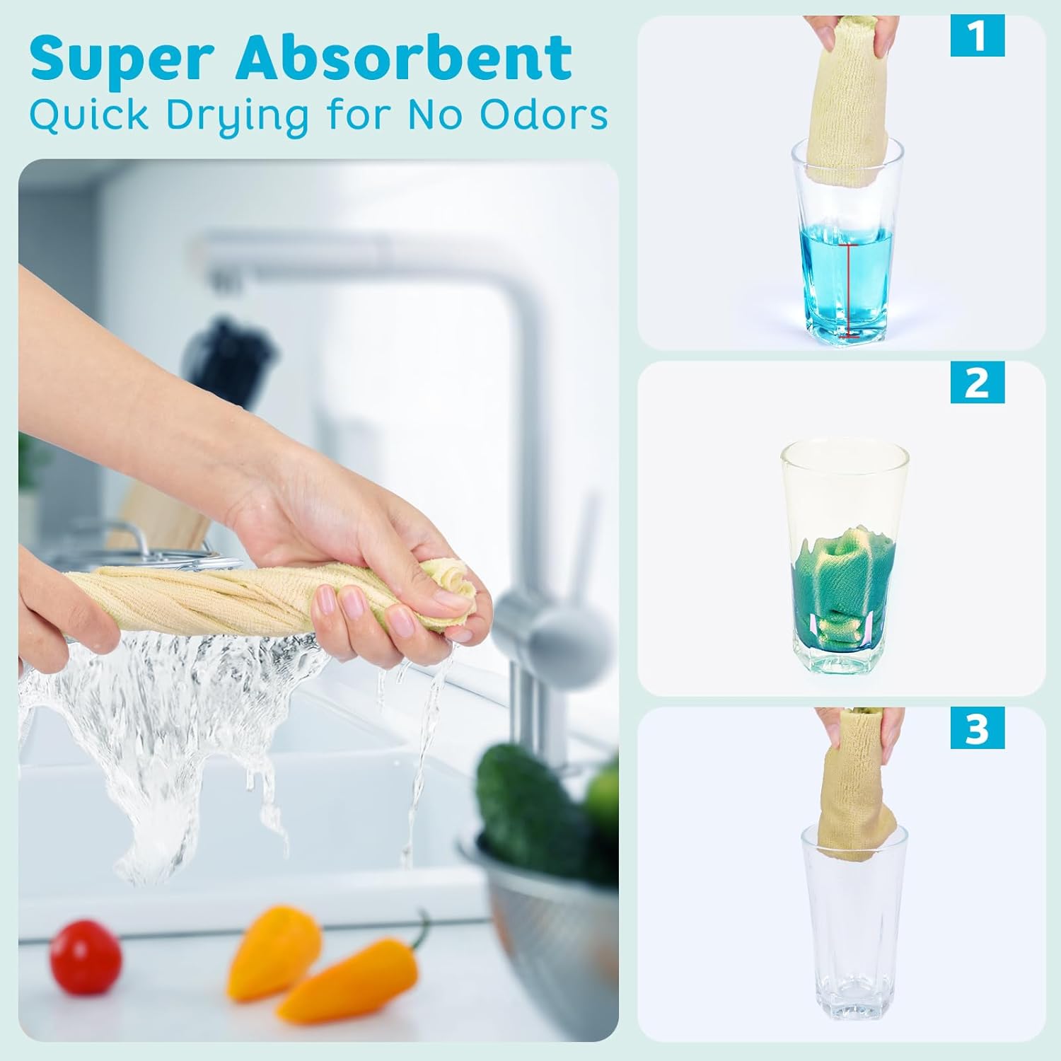 - Instant SOAK UP - Absorbing 4 times more than cotton cloths and 5 times their weight in water, these microfiber cleaning cloths are the all-purpose rags for glass, dishes, automotive,and smooth surfaces.They quickly tackle messes, oils, and liquids, outperforming sponges&conventional towels in speed and efficiency