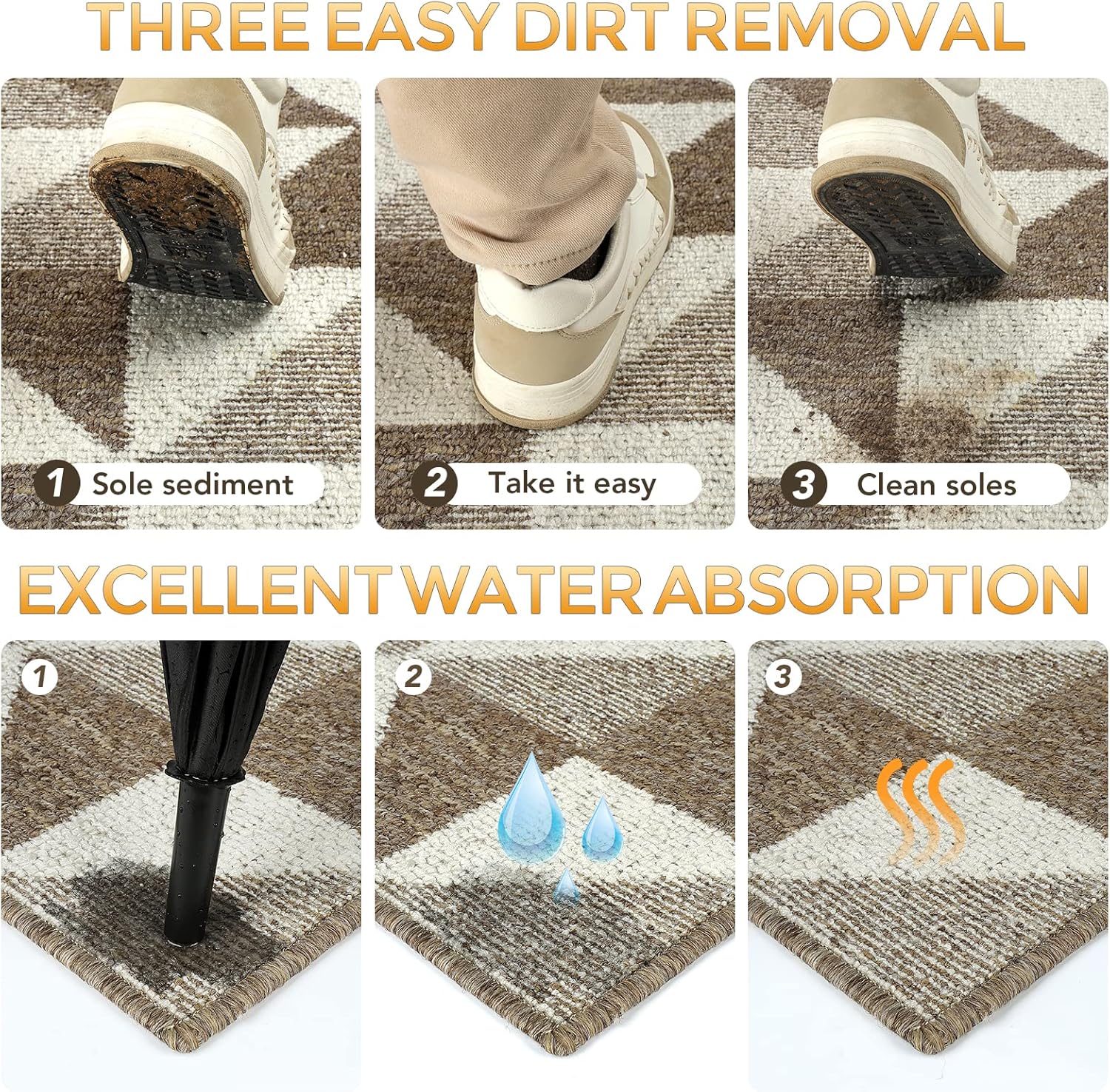 • Durable & NON-SLIP: Our Indoor Doormat is made of high-quality absorbent polypropylene fabric, uses double layer technology which absorb moisture and dirt from shoes quickly, makes your floors clean and dry. And the non-skid TPR rubber backing won't scuff floors, perfect for both indoor and outdoor use.