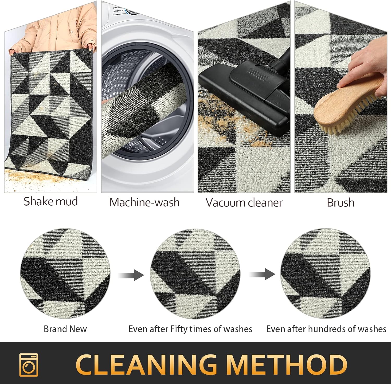- EASY TO CLEAN: The unique rib fabric design removes dirt from shoes easily. When your doormat gets dirty, first shake it off outdoors or over your garbage bins, then sweep with a broom or vacuum regularly or use a garden hose to rinse the mat outdoors. For deeper clean: machine washable, use water under 86 (โ) / 30 (โ). Do not iron. Do not bleach. Do not expose it to the sun for a long time.