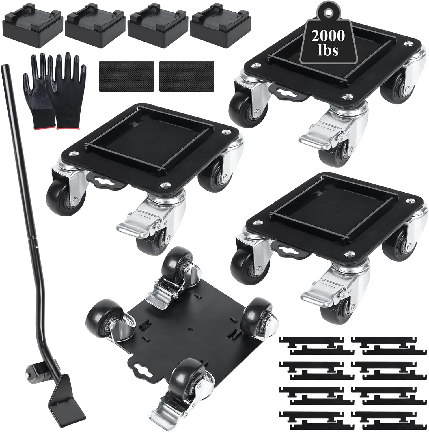 Furniture Movers with 4 Wheels,Heavy Duty Furniture Lift Mover Tool Set with 2000 lbs Load Capacity, Easy Sliders Dolly with Removable Side Guards&Brake, for Moving Appliance,Sofa etc