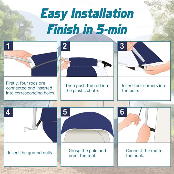 - [5-Minute Easy Setup]: Pre-attached poles joints allow quick assembly (incl. 4 guy ropes & 8 stakes),Crosship portable shower tent for camping with visual instructions for all users.