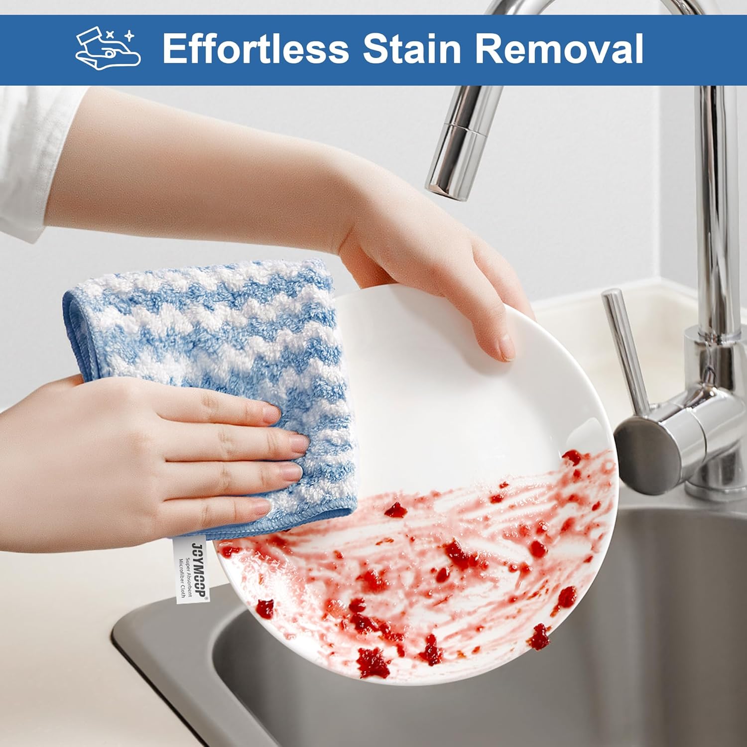 JOYMOOP Microfiber Cleaning Cloths – 18 Pack, 10" x 10", Blue – Reusable, Lint-Free, Super Absorbent Towels for Kitchen, Car, and Household Cleaning