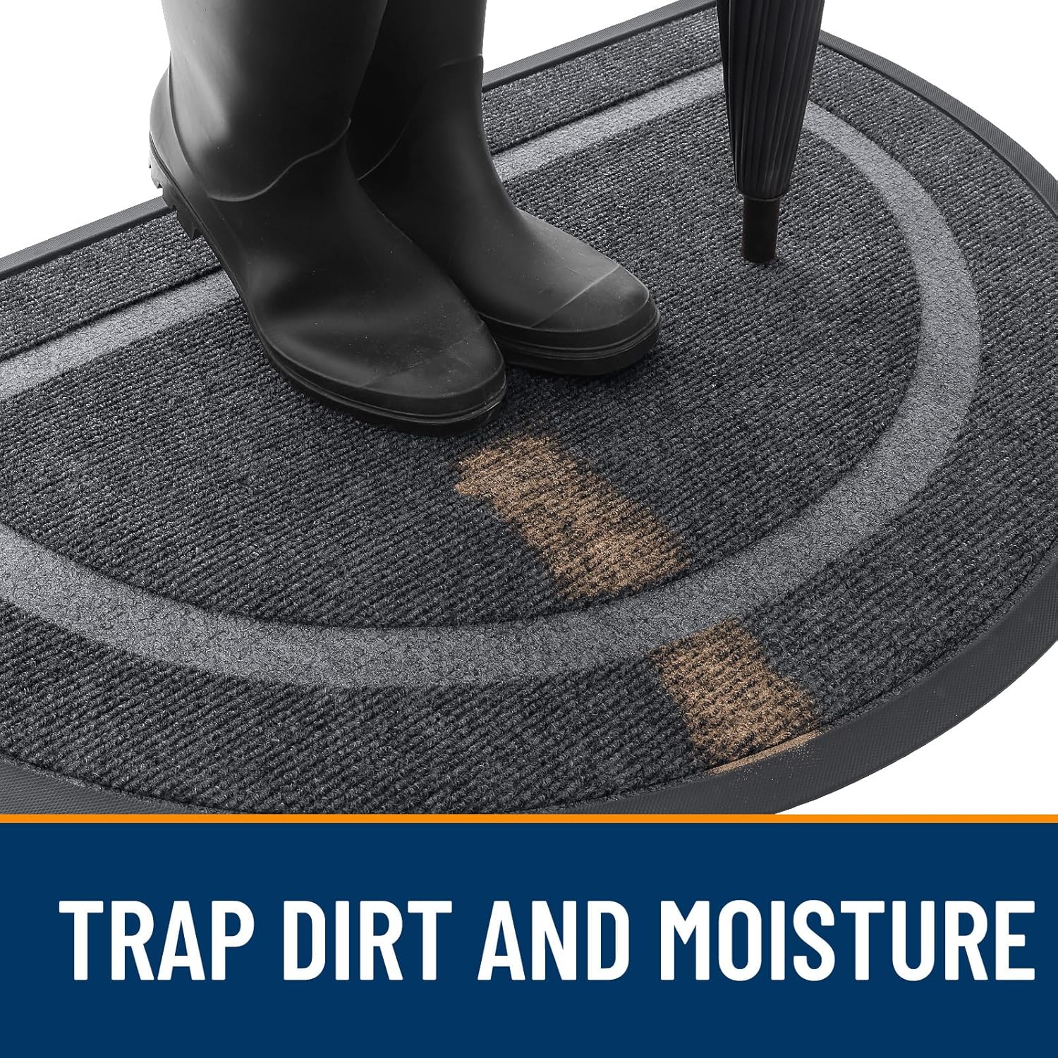 OLANLY Half Circle Door Mat Indoor Outdoor Entrance Welcome, Waterproof All-Season, All-Weather Doormat, Sturdy Natural Rubber, Low Profile, Easy Clean Patio Porch Entryway Mat, 59x35, Grey
