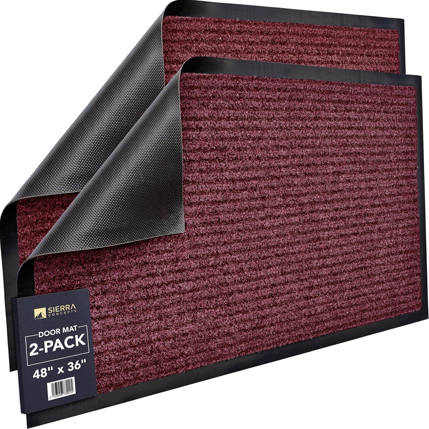 Sierra Concepts Front Door Mat X-Large Welcome Floor Mats - Entryway Indoor Outdoor Entrance Doormat, Patio, Porch, Muddy Dog Shoe, Inside Outside Low Profile 48x36in, 2-Pack Red