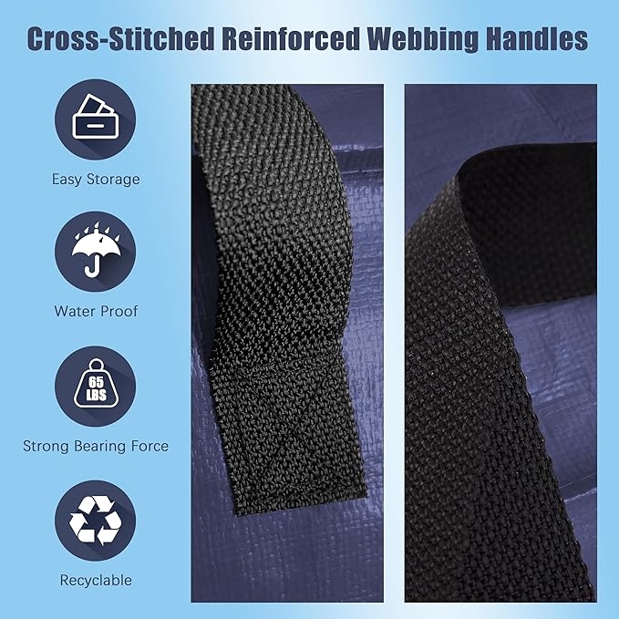 4 Pack Large Strong Moving Bags with Zippers & Carrying Handles - Water-Resistant - Heavy Duty Storage Tote for Space Saving, Fold Flat, Alternative to Moving Box (Blue)