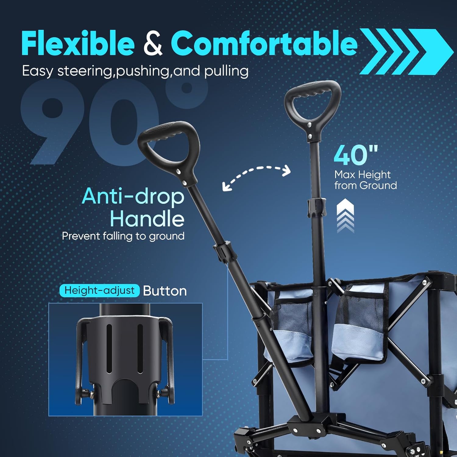 Sekey Collapsible Foldable Wagon with 330lbs Weight Capacity, Heavy Duty Folding Wagon Cart with Big All-Terrain Wheels & Drink Holders. Blue