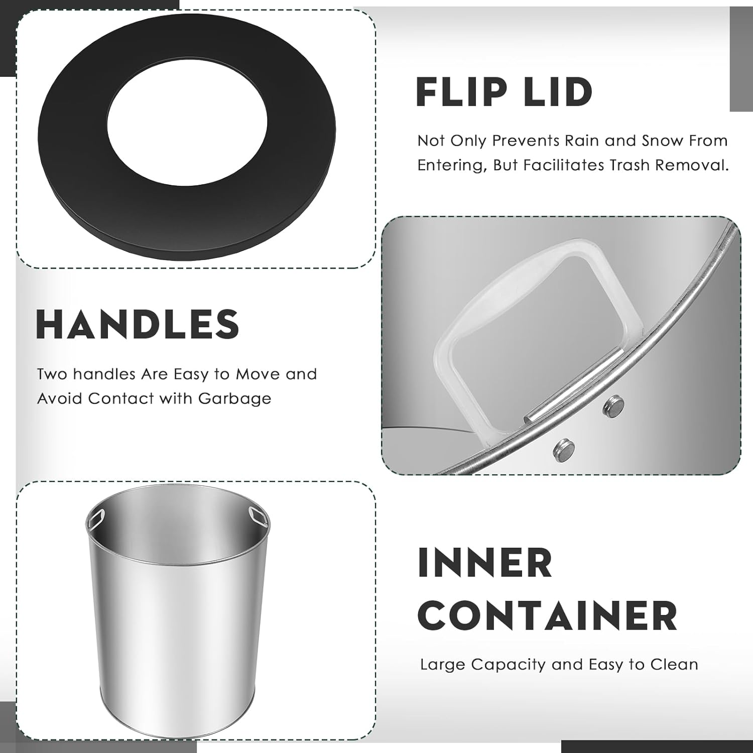- 【All-Weather Resilience】Engineered to withstand any climatic condition, this trash can is a reliable outdoor companion. Be it torrential rain, heavy snowfall, or scorching sun, it maintains its integrity. Its all-weather resistant properties make it a top pick for parks, beaches, and streetscapes where it's constantly exposed to the elements. You can count on it to stay intact and functional throughout the year.