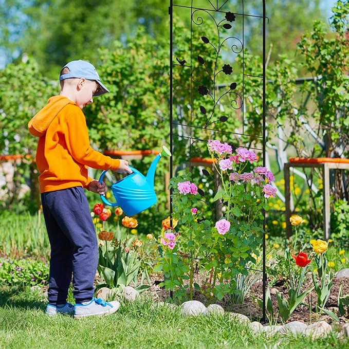LZRS 4 Pack Rustic Iron Arch Decoration Garden Trellis with Black Metal Coating – Perfect for Supporting Climbing Plants Outdoor, Roses, Vines, Flowers, and Vegetables.