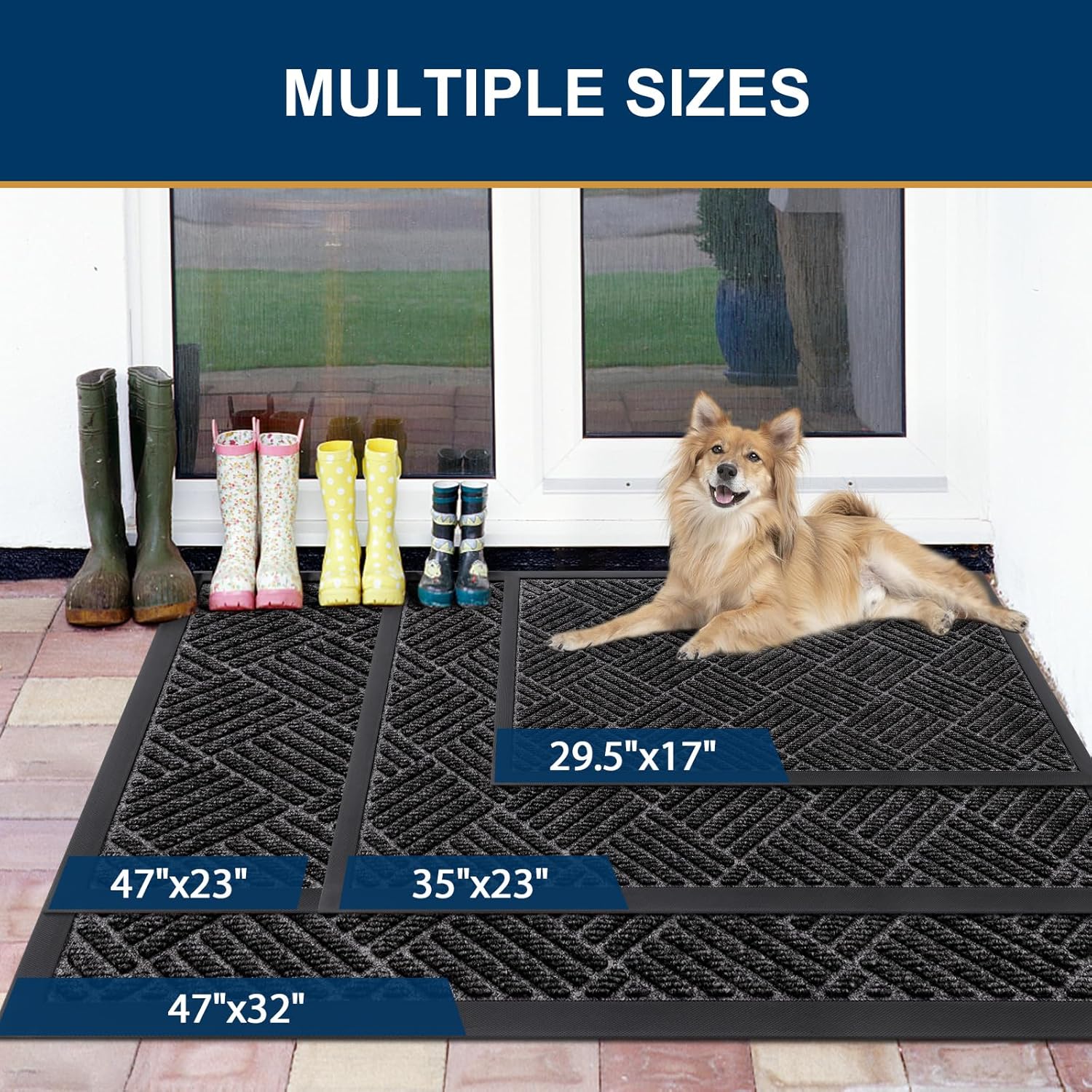 Smiry Front Door Mat Outside Entrance, Heavy Duty Outdoor Indoor Natural Rubber Doormat, Non Slip, Trap Dirt and Moisture, Easy Clean, Low Profile Patio Porch Entryway Mat, 29.5x17, Silver Grey