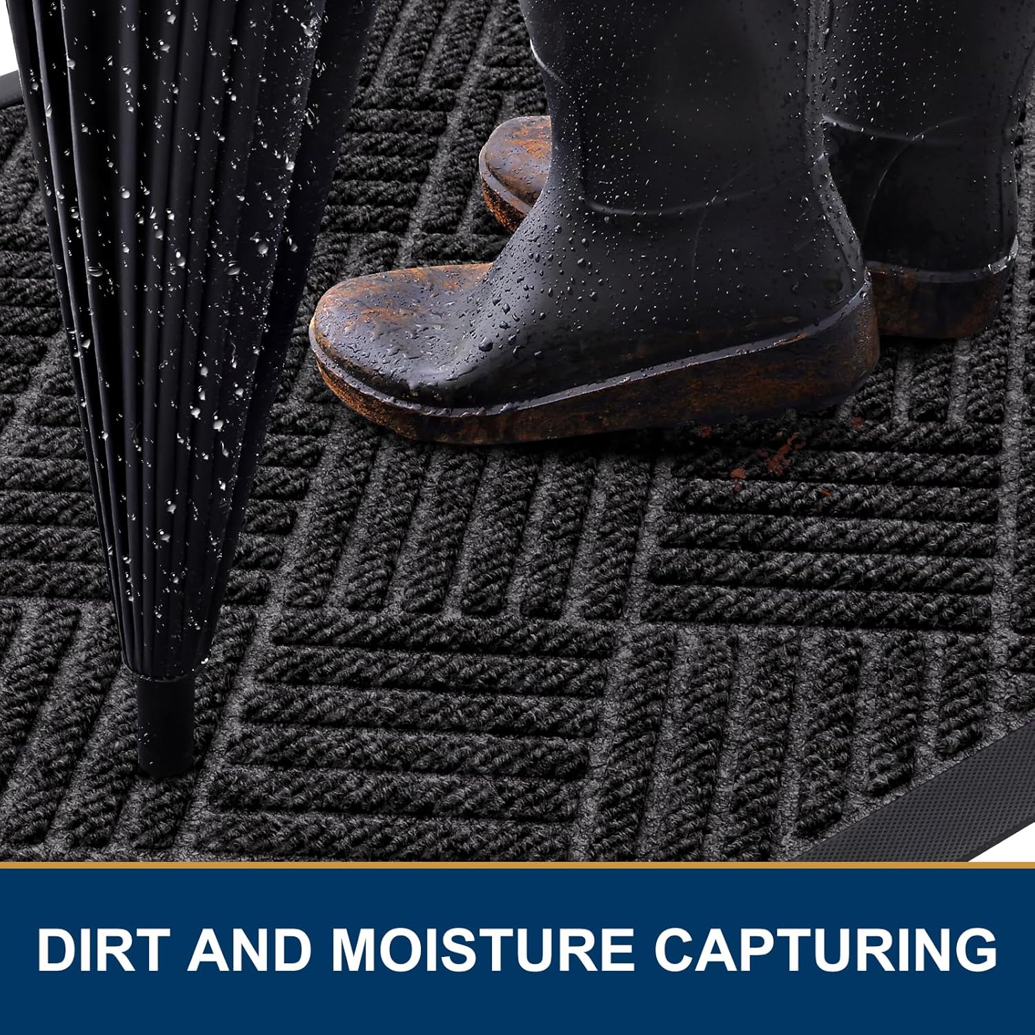 - Capture Dirt and Moisture: The surface of the Smiry door mat is crafted from woven polyester fabric. The deep grooves can effectively trap the dust, gravel, mud, sand and other clutter. The sturdy beveled rubber edge will not accumulate water. Even rainy, snowy or muddy weather will keep your home dry and clean