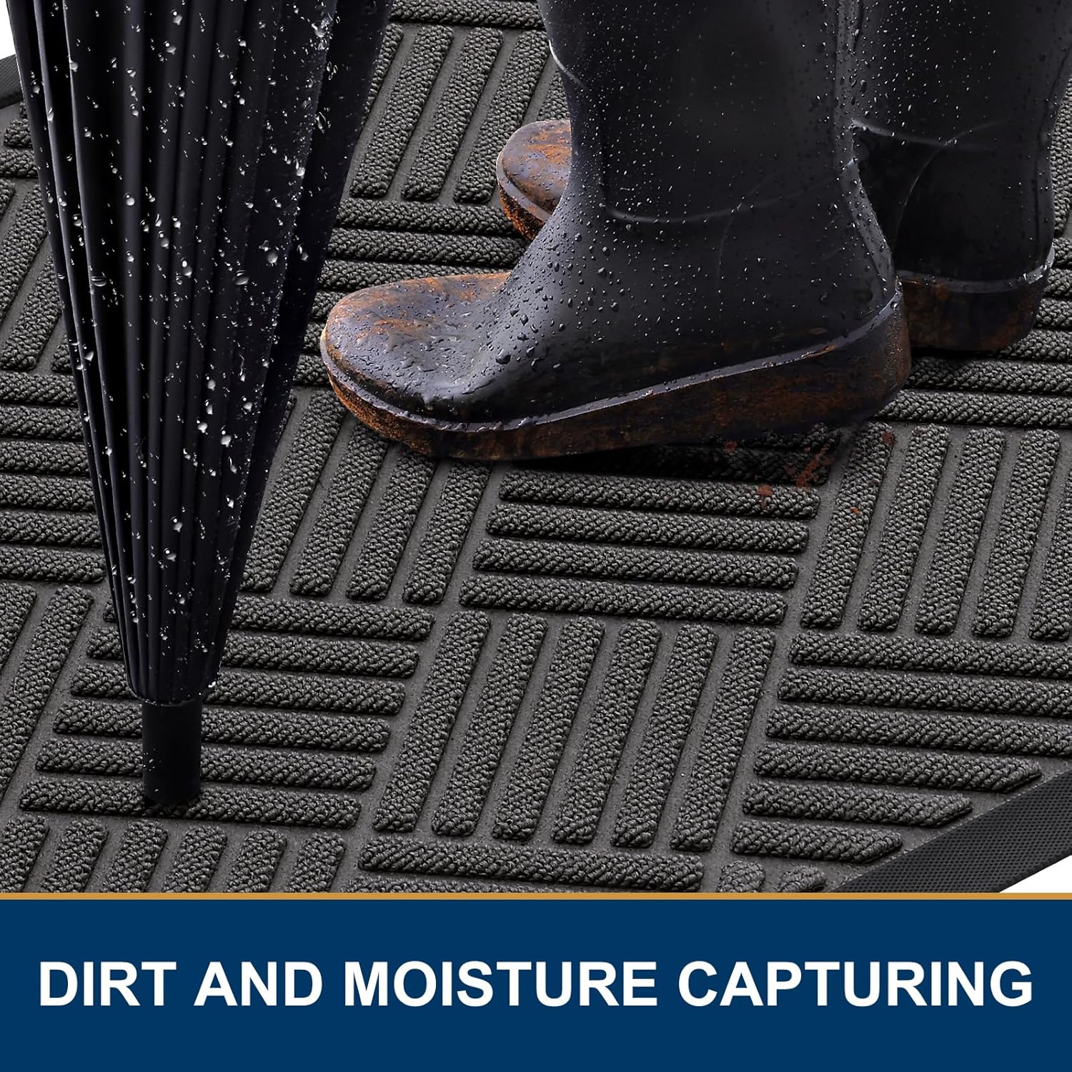 - Capture Dirt and Moisture: The surface of the Smiry door mat is crafted from woven polyester fabric. The deep grooves can effectively trap the dust, gravel, mud, sand and other clutter. The sturdy beveled rubber edge will not accumulate water. Even rainy, snowy or muddy weather will keep your home dry and clean