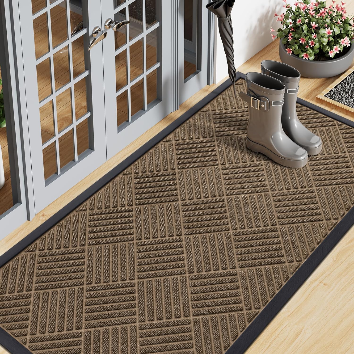 - Capture Dirt and Moisture: The surface of the Smiry door mat is crafted from woven polyester fabric. The deep grooves can effectively trap the dust, gravel, mud, sand and other clutter. The sturdy beveled rubber edge will not accumulate water. Even rainy, snowy or muddy weather will keep your home dry and clean
