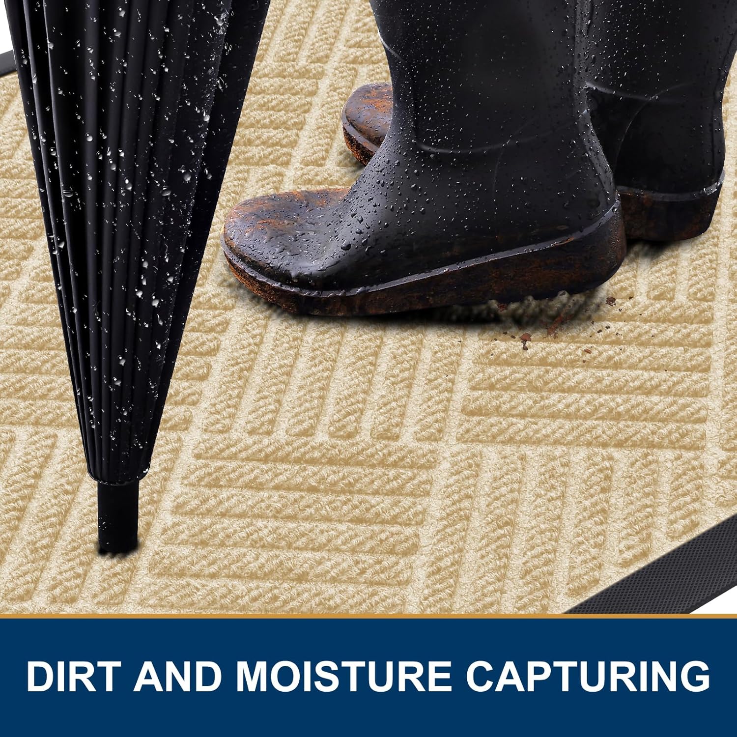 - Capture Dirt and Moisture: The surface of the Smiry door mat is crafted from woven polyester fabric. The deep grooves can effectively trap the dust, gravel, mud, sand and other clutter. The sturdy beveled rubber edge will not accumulate water. Even rainy, snowy or muddy weather will keep your home dry and clean