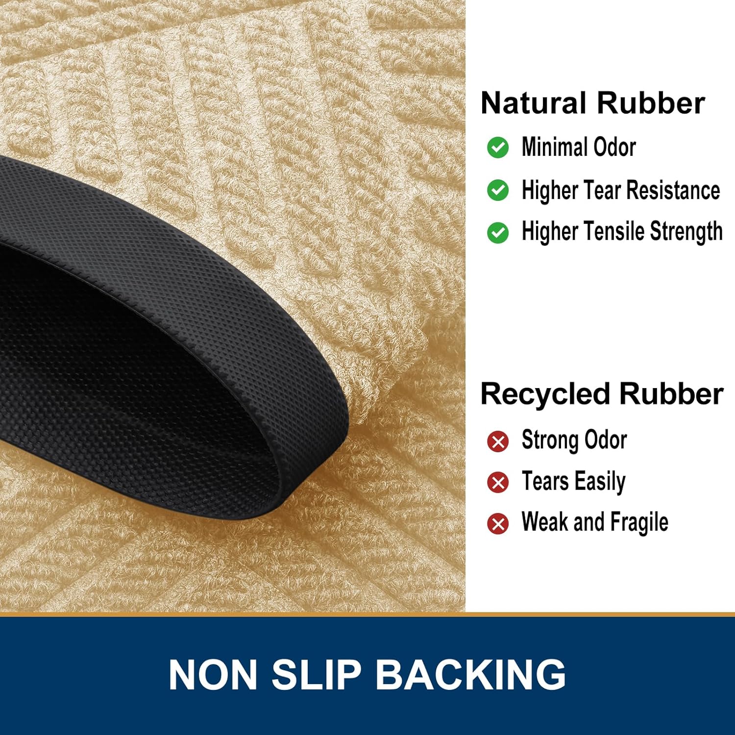 Smiry Front Door Mat Outside Entrance, Heavy Duty Outdoor Indoor Natural Rubber Doormat, Non Slip, Trap Dirt and Moisture, Easy Clean, Low Profile Patio Porch Entryway Mat, 71x47, Beige