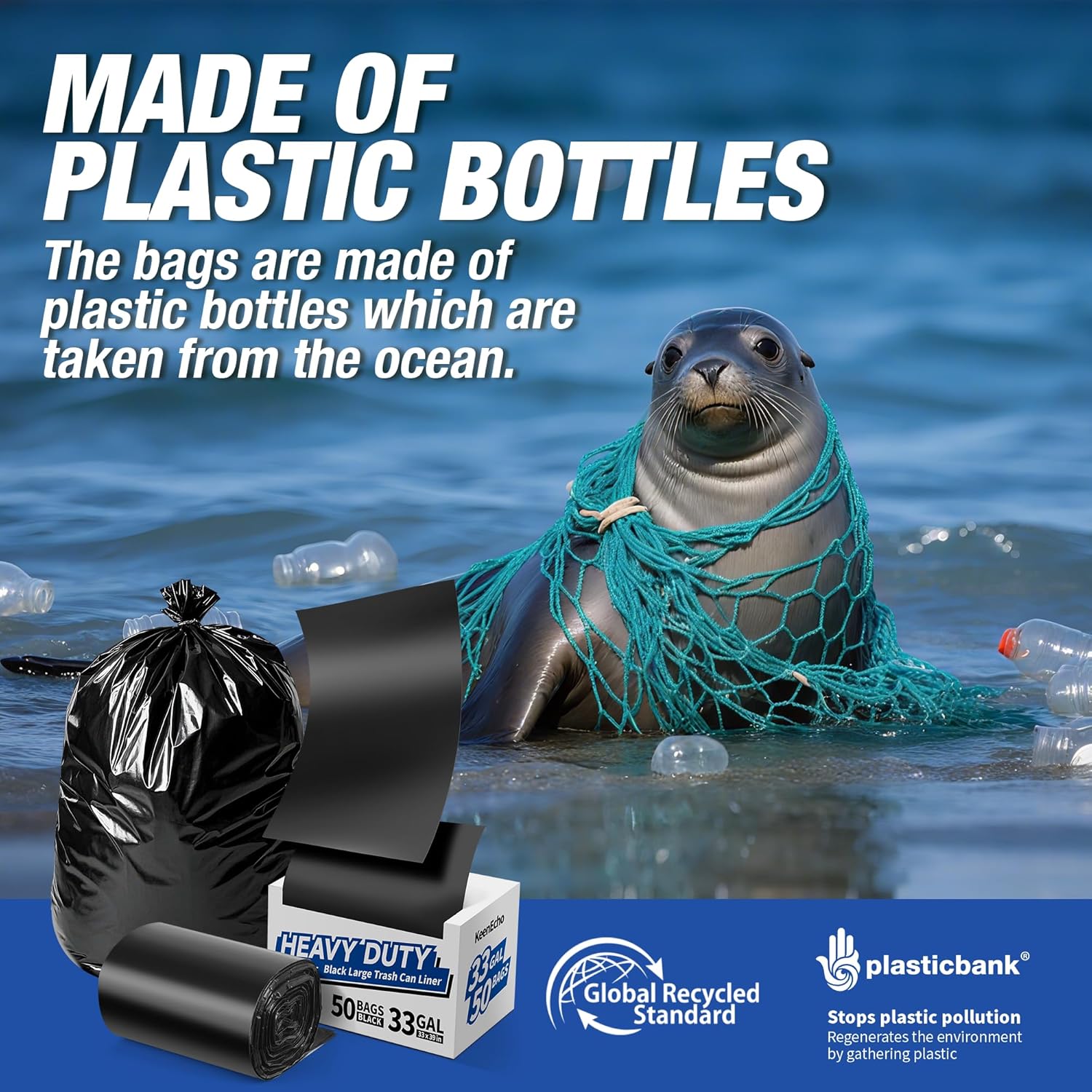 - [THE POWER OF ENVIRONMENTAL AWARENESS] Made from 100% marine-recycled HDPE plastic, these contractor-grade bags prevent marine pollution while handling 55-60 gallons of sharp debris.