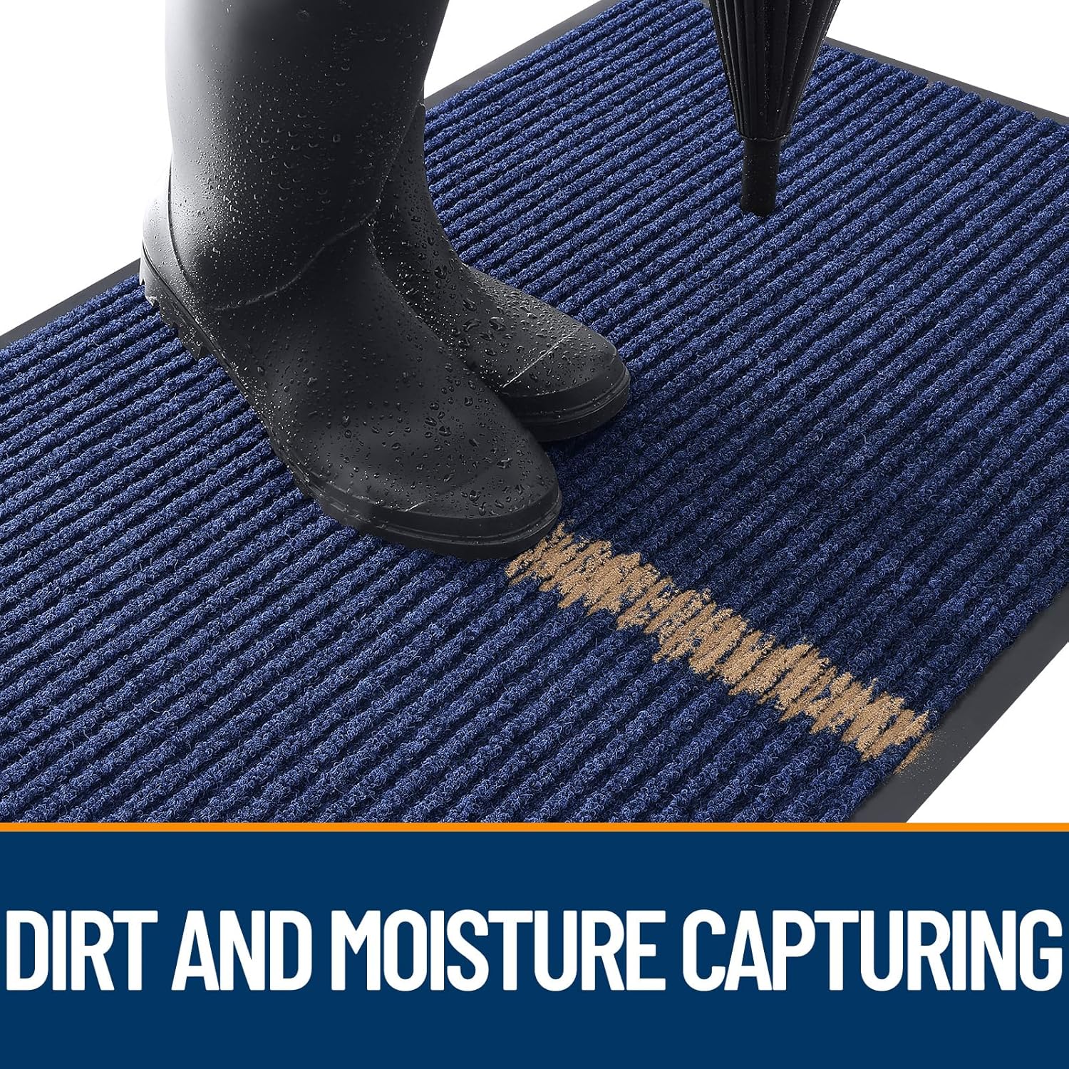 OLANLY Front Door Mat Indoor Outdoor Entrance, Waterproof Heavy Duty Doormat, Fade Resistant, Low Profile, Easy Clean Patio Porch Welcome Floor Mats for Entry, 40x32, Blue