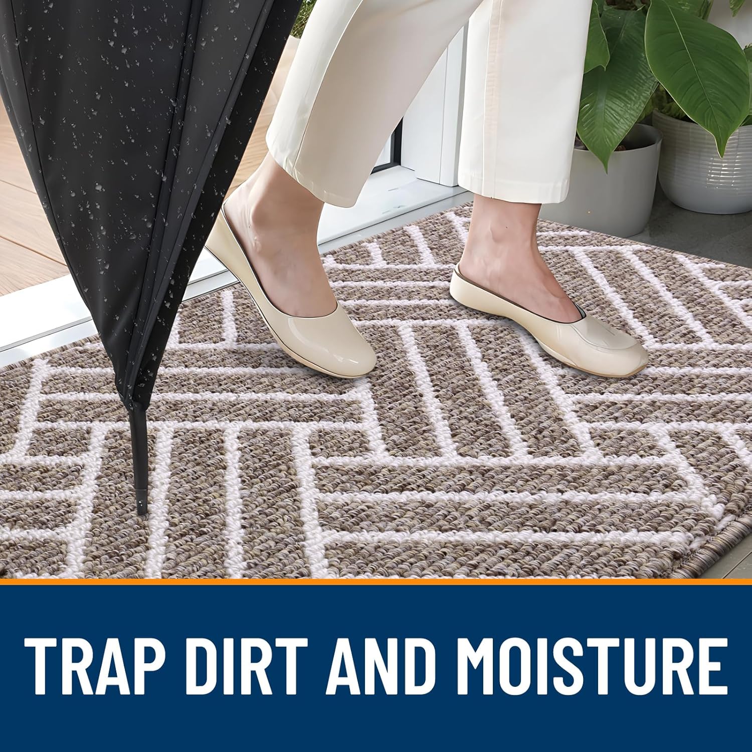 - [LOW-PROFILE DESIGN]: With a sleek geometric pattern, this mat adds a modern touch to your home. Its low-profile design ensures it fits smoothly under your door without obstructing movement, making it the ideal doormat to elevate your home's aesthetic.