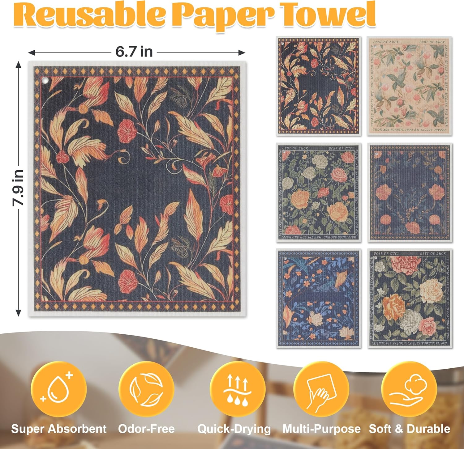 JOYMOOP 6 Pack Dishcloths for Kitchen, Reusable Paper Towels Washable, Absorbent Non-Scratch Dish Cloths for Washing Dishes, Quick-Drying Cleaning Rags for Cookware and Household, 6.7×7.9 Inch