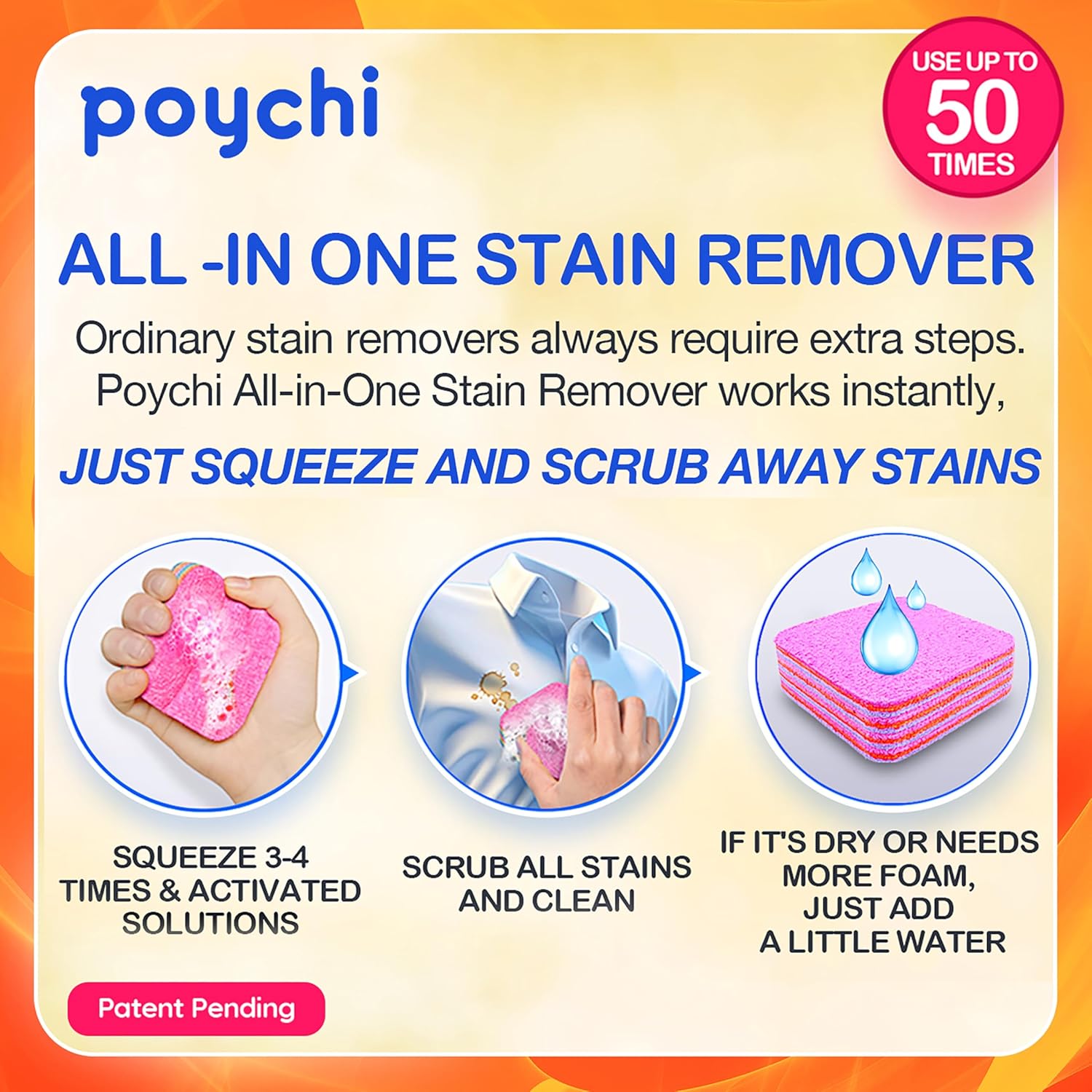 - Safe for Home & Family: Designed with kids and pets in mind, POYCHI's laundry stain remover is ideal for home use. It’s effective as a couch spot cleaner for fabric, paint remover for clothes, dry cleaning for clothes, stain stick, and even a color catchers for laundry. Perfect for all fabrics