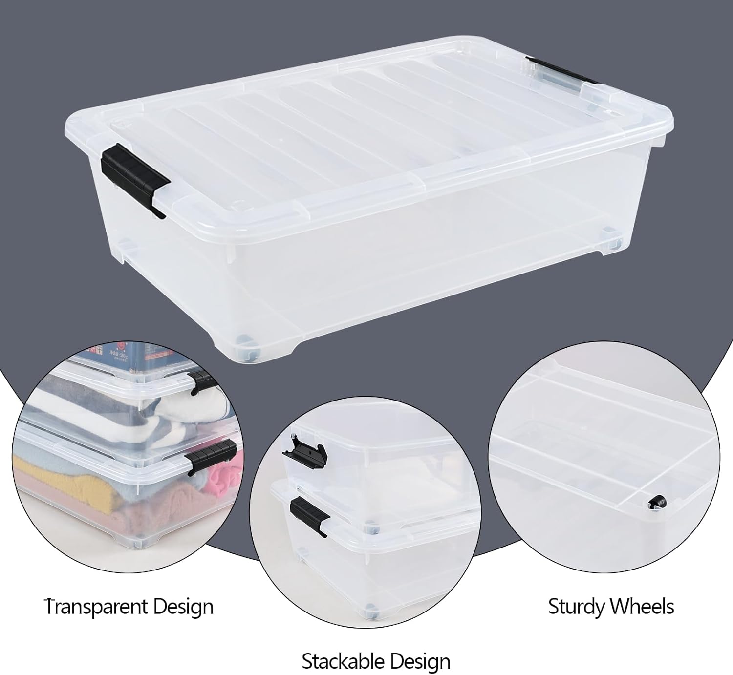 - Special Feature : Stackable, Transparent, Wheeled