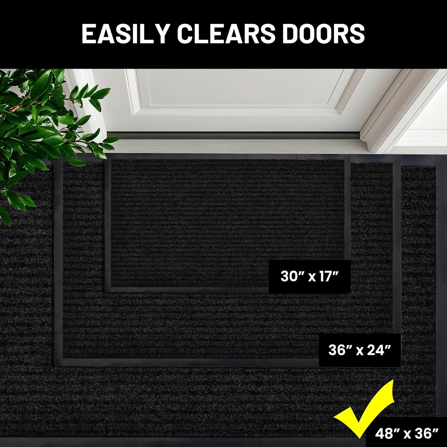 - Includes 2 BLACK X-Large Indoor Outdoor Floor Mats: Enjoy two amazing heavy duty high quality ribbed polyester door mats (Larger 48" x 36") that will be perfect welcome for the everyday home. Amazing value 2-Pack.