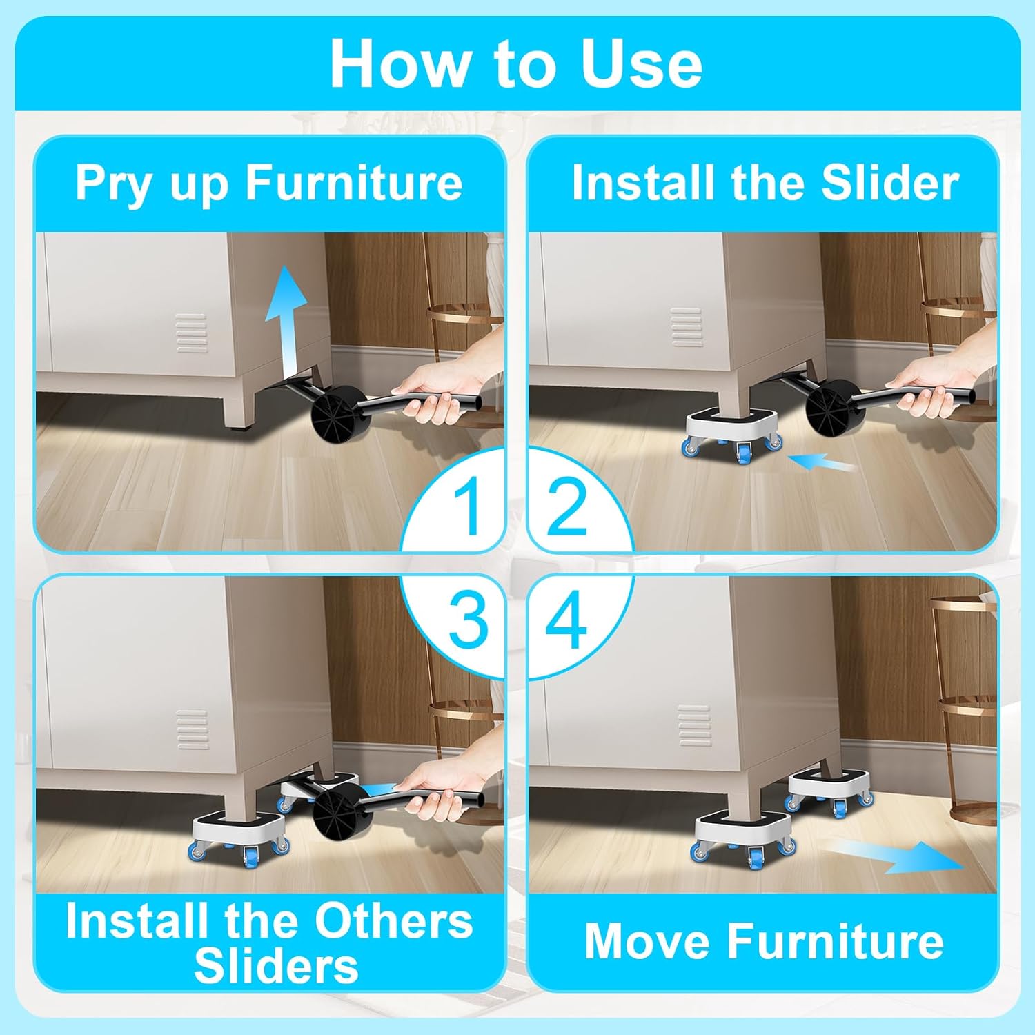 - 【Safe and Reliable Design】New furniture movers with wheels has an anti-slip groove design and with anti-slip pads that prevent the furniture from sliding off the floor during moving, ensuring the safety of the furniture and people