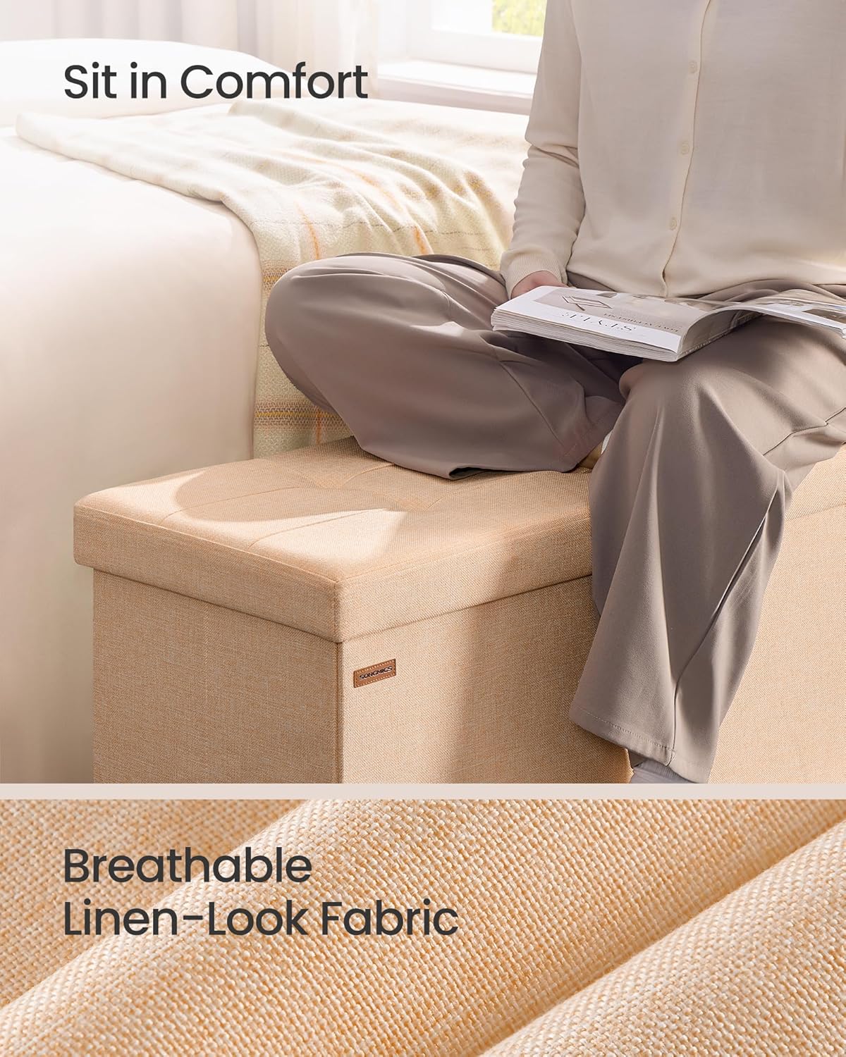 - Top Material Type Linen-Look Fabric : Base Type Storage